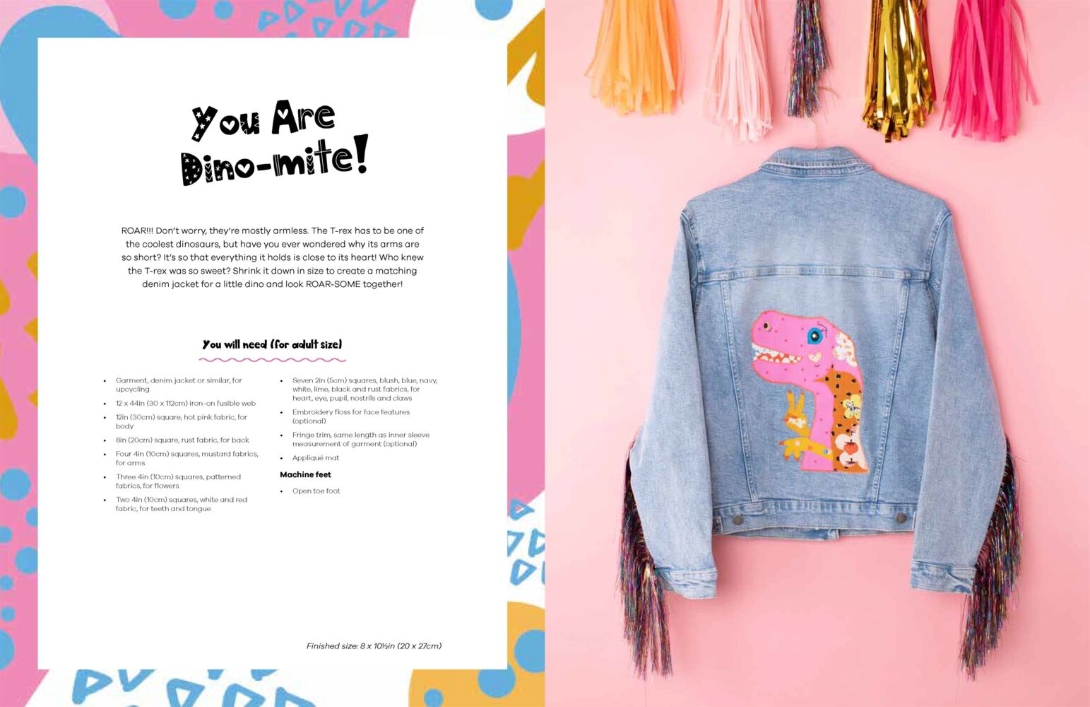 Author, Mandy Murray, has a very unique style and that is reflected in her irreverent, humorous approach to designing, so whether it's a dachshund in a doughnut or a flamingo who likes to mingle, her designs can't fail to make you smile. This collection includes 12 projects for homewares and wearables. Choose from a fun floor cushion to an apron, table mats, wall hanging and even a dinosaur inspired applique design for a denim jacket.