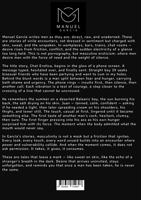 Manuel García writes men as they are: direct, raw, and unadorned. These are stories of virile encounters, not dressed in sentiment but charged with skin, sweat, and the unspoken. In workplaces, bars, trains, chat rooms desire rises from friction, conflict, and...