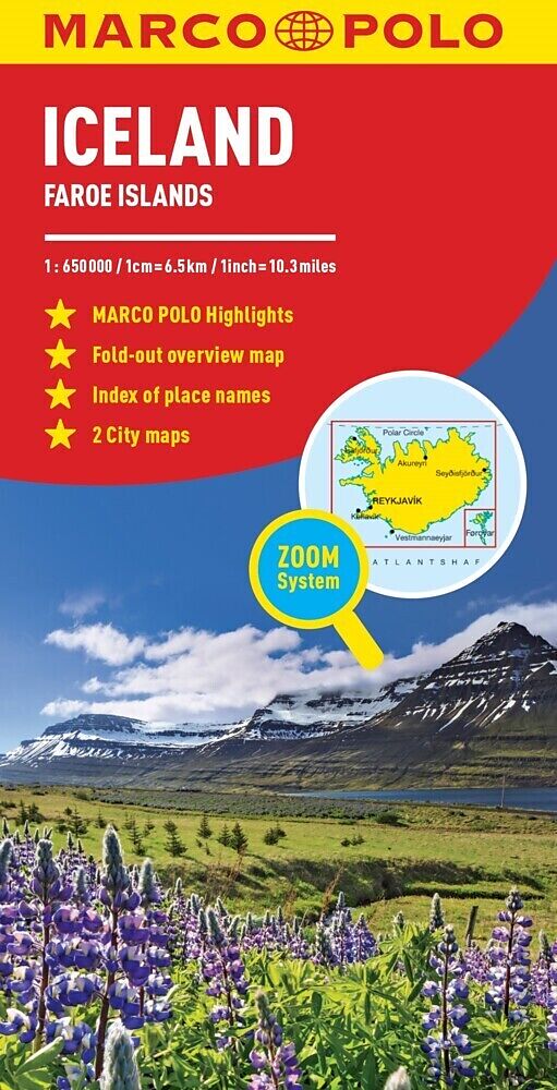 Let the Marco Polo map of Iceland guide you around this wonderful country. Highly durable, this detailed, touring map of Iceland folds away easily and is always on standby to help when you're stuck. Ideal for planning your trip before you go and for explo...Let the Marco Polo map of Iceland guide you around this wonderful country. Highly durable, this detailed, touring map of Iceland folds away easily and is always on standby to help when you're stuck. Ideal for planning your trip before you go and for exploring while you're there. The map also features top sights not to be missed.