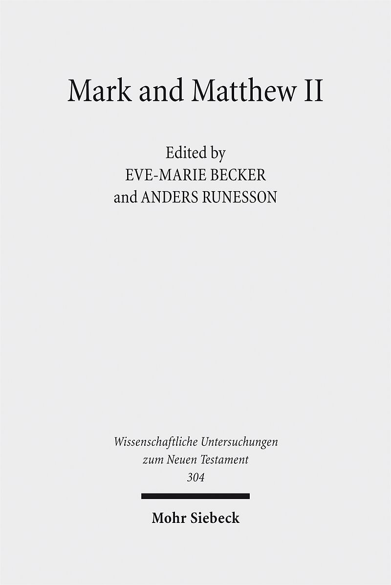 Preface Anders Runesson/Eve-Marie Becker: Introduction: Reading Mark and Matthew Within and Beyond the First Century PART I Reception and Cultural Hermeneutics: Reading Mark and Matthew From the 1st to the 21st Century Eve-Marie Becker: The Reception of "Mark" in the 1st and 2nd Centuries CE and its Significance for Genre Studies - Petri Luomanen: From Mark and Q to Matthew: An Experiment in Evolutionary Analysis - Benedict Viviano: Who Wrote Q? The Sayings Document (Q) as the Apostle Matthew's Private Notebook as a Bilingual Village Scribe (Mark 2:13-17; Matt 9:9-13) - René Falkenberg: Matthew 28:16-20 and the Nag Hammadi Library: Reception of the Great Commission in the Sophia of Jesus Christ - Peter Widdicombe: The Patristic Reception of the Gospel of Matthew: The Commentary of Jerome and the Sermons of John Chrysostom - Joseph Verheyden: Reading Matthew and Mark in the Middle Ages: The Glossa Ordinaria - Martin Meiser: Protestant Reading of the Gospels of Mark and Matthew in the 20th Century - Detlev Dormeyer: A Catholic Reading of the Gospels of Mark and Matthew in the 20th Century - Anders Runesson: Judging the Theological Tree by its Fruit: The Use of the Gospels of Mark and Matthew in Official Church Documents on Jewish - Christian Relations PART II History, Meaning, and the Dynamics of Interpretation Adela Yarbro Collins: Mark and the Hermeneutics of History Writing - Stephen Westerholm: Hearing the Gospels of Matthew and Mark - Mogens Müller: The Place of Mark and Matthew in Canonical Theology: A Historical Perspective - Janice Capel Anderson: Mark and Matthew in Feminist Perspective: Reading Matthew's Genealogy - Hans Leander: Mark and Matthew after Edward Said - Todd Penner/Caroline Vander Stichele: Re-Assembling Jesus: Rethinking the Ethics of Gospel Studies - Michael Knowles: The Interpretation of Mark and Matthew in Historical Perspective: The Transfiguration as a Test Case