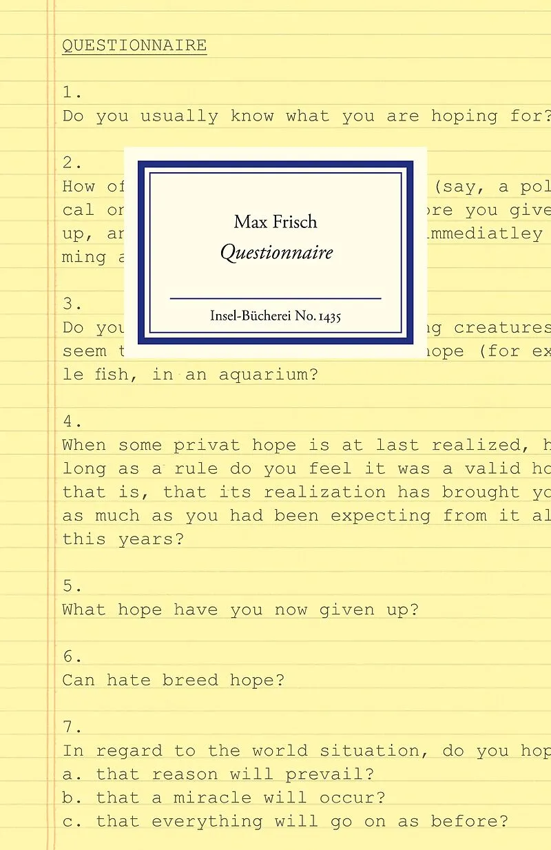 »Halten Sie sich für einen guten Freund? Sind Sie sich selber ein Freund?« Zwischen diesen beiden Fragestellungen liegen 23 Fragen zum Thema Freundschaft. Max Frischs berühmte Fragebogen entstammen dem Tagebuch 1966-1971 , und jeder dieser zehn Fragebogen krei...