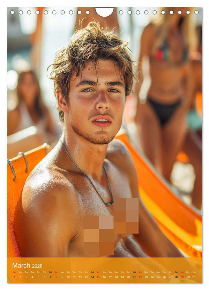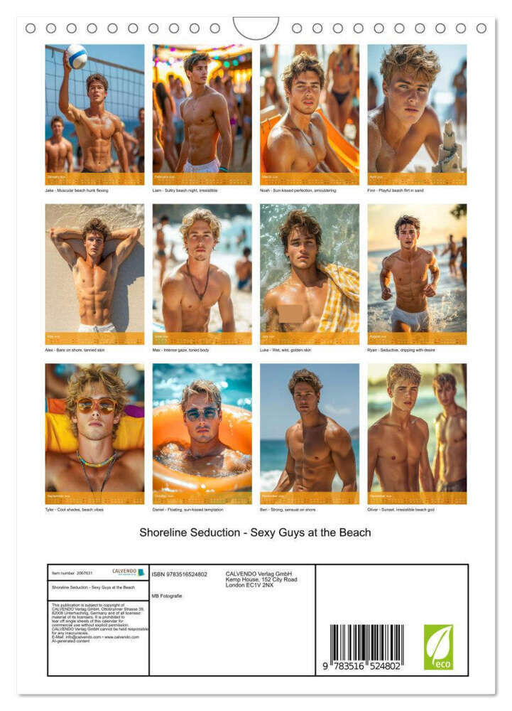 Prepare for a year of pure temptation with twelve incredibly sexy, young men flaunting their naked chests, chiselled six-packs, and tanned bodies. Whether emerging from the waves or lounging by the shore, these muscular hunks bring a powerful mix of eroticism ...