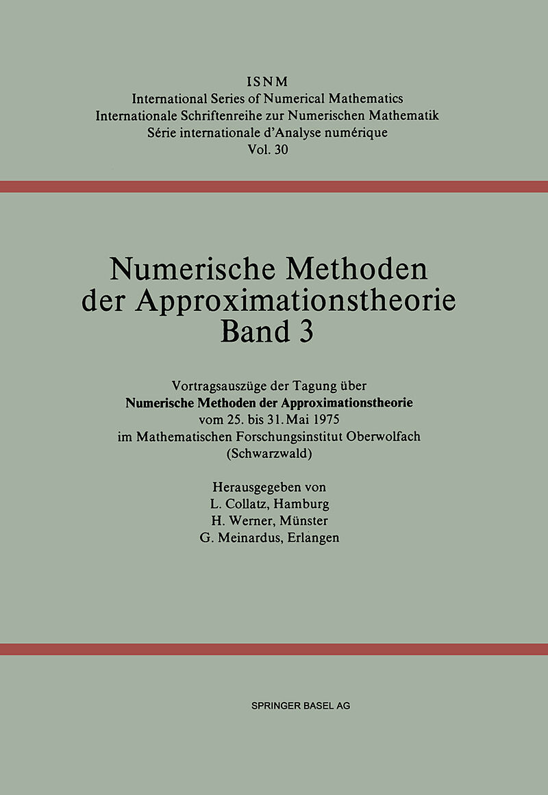 Der vorliegende Band stellt Vortragsmanuskripte einer am Mathematischen Forschungsinstitut, Oberwolfach, in der Zeit vom 25. bis 31. Mai 1975 veran stalteten Tagung zusammen, die unter der Leitung der Unterzeichner stand. Die letzten dieser Tagungen über numer...