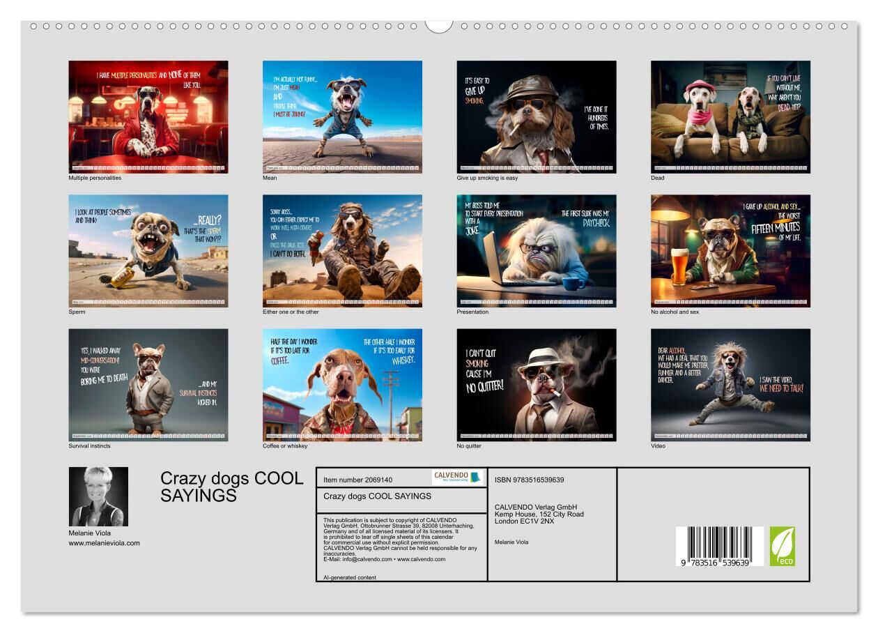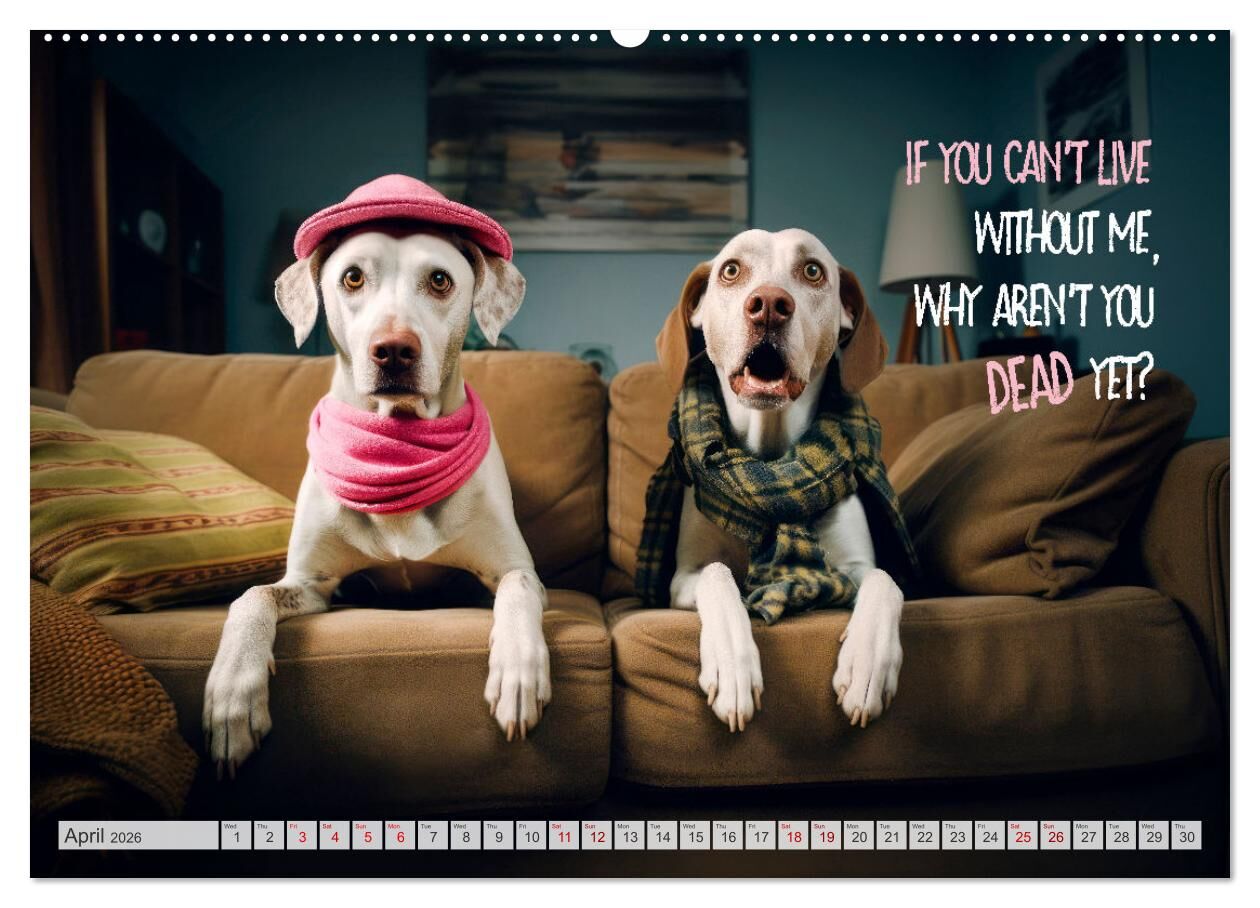 Crazy dogs COOL SAYINGS (High Quality Premium Wall Calendar 2026 DIN A2 landscape),CALVENDO 12 Month Wall Calendar