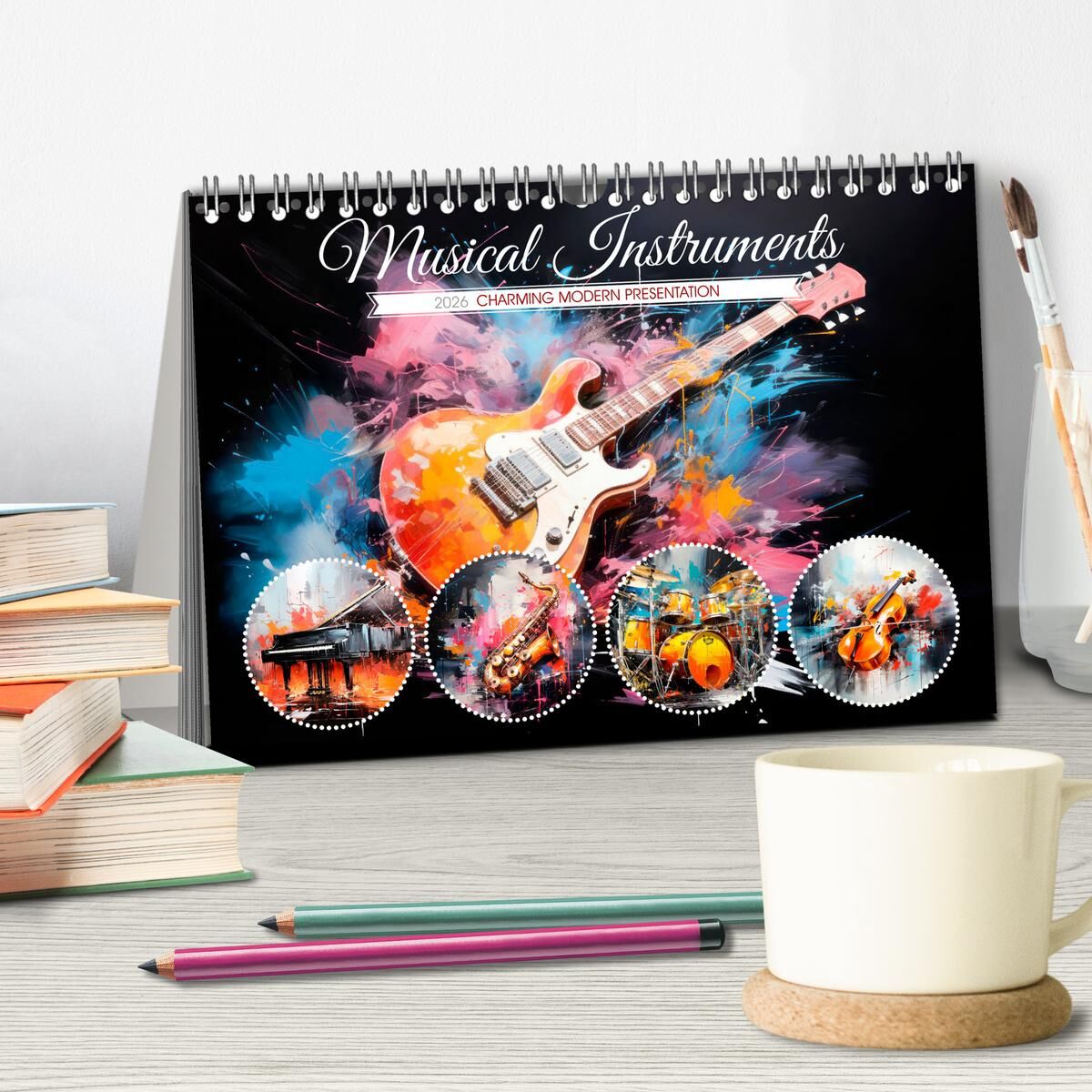 What would the world be without music - throughout all times and almost all cultures, music has fascinated mankind. Nowadays, listening is all about fun, relaxation, enjoyment, dancing or partying. Explore 12 fantastic instruments in a colourful abstract expre...