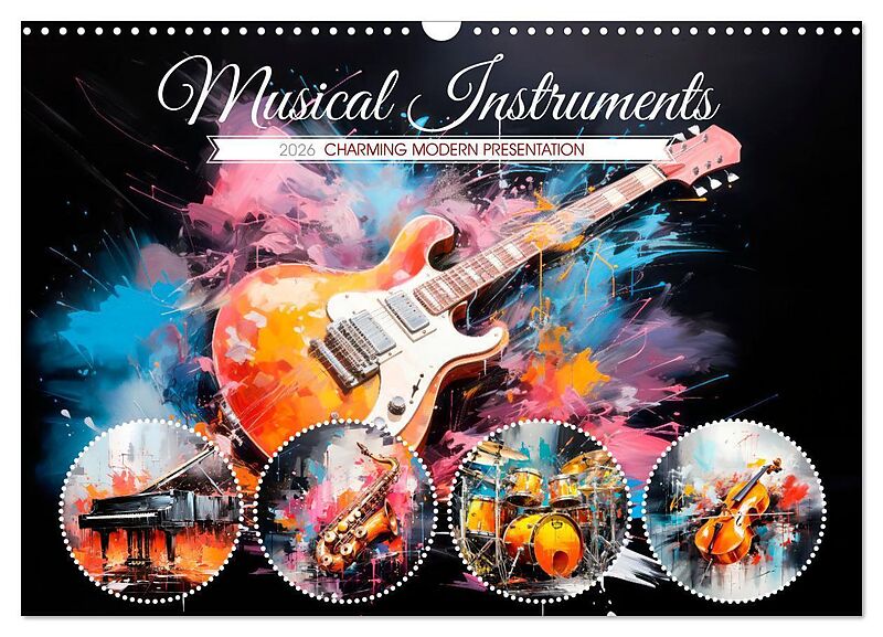 What would the world be without music - throughout all times and almost all cultures, music has fascinated mankind. Nowadays, listening is all about fun, relaxation, enjoyment, dancing or partying. Explore 12 fantastic instruments in a colourful abstract expre...