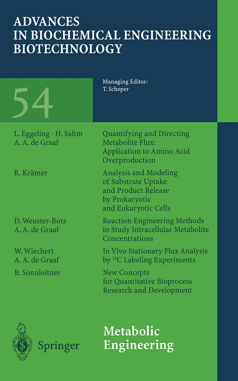Klappentext This collection of papers on metabolic engineering covers such areas as quantifying and directing metabolic flux, analysis and modelling of substrate uptake and product release by prokaryotic and eukaryotic cells, and in vivo stationary flux analys...