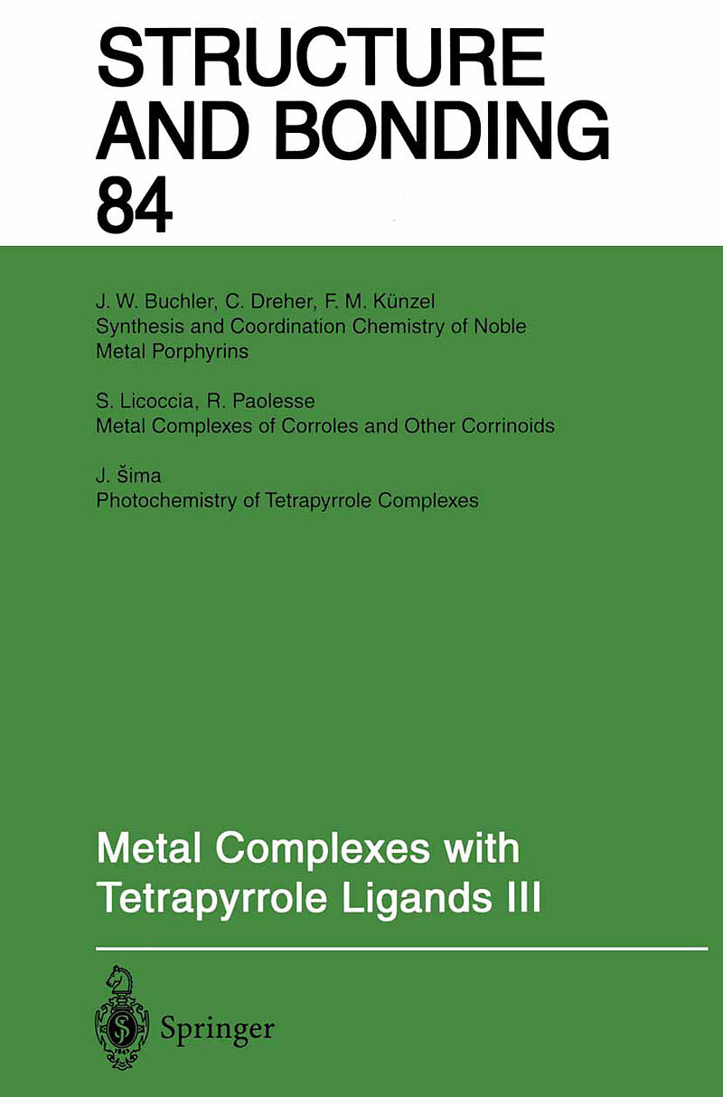 InhaltSynthesis and coordination chemistry of noble metal porphyrins.- Metal complexes of corroles and other corrinoids.- Photochemistry of tetrapyrrole complexes.