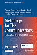 This open access book provides a state-of-the-art overview of metrology for upcoming THz communications, considered a key component of next generation wireless communication systems. Effective methods to conduct and evaluate measurements are crucial for the advancement of THz communication systems. However, at the start of the project in 2019, metrology at THz frequencies was still in its infancy, and thus far had only addressed detector calibration to characterize ultrafast devices as well as measuring uncertainty analyses of different spectrometer types available at THz frequencies. This book highlights how the grand challenge of metrology in THz communication measurements was addressed systematically in the publicly funded project DFG FOR 2863 Meteracom (Metrology for Terahertz Communications). It delves into four distinct and foundational project areas: traceability to the International System of Units (SI), characterization of the measurement system itself, metrological characterization of the RF components and the propagation channel, and measurements required for enabling the functionality of THz communications.