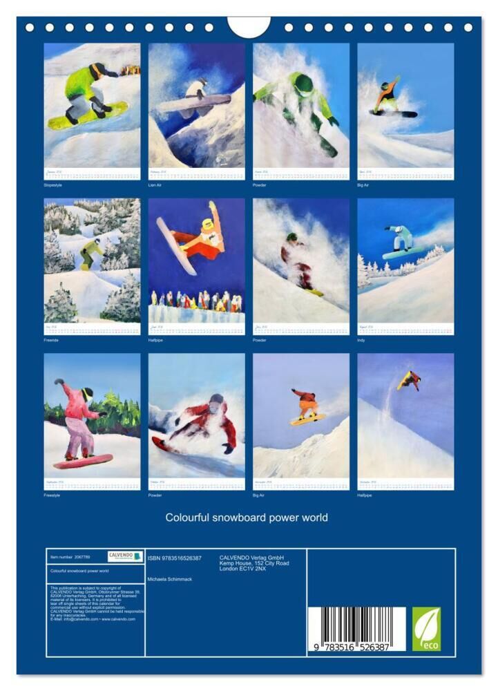 Colourful snowboard power world (Wall Calendar 2026 DIN A4 portrait), CALVENDO 12 Month Wall Calendar