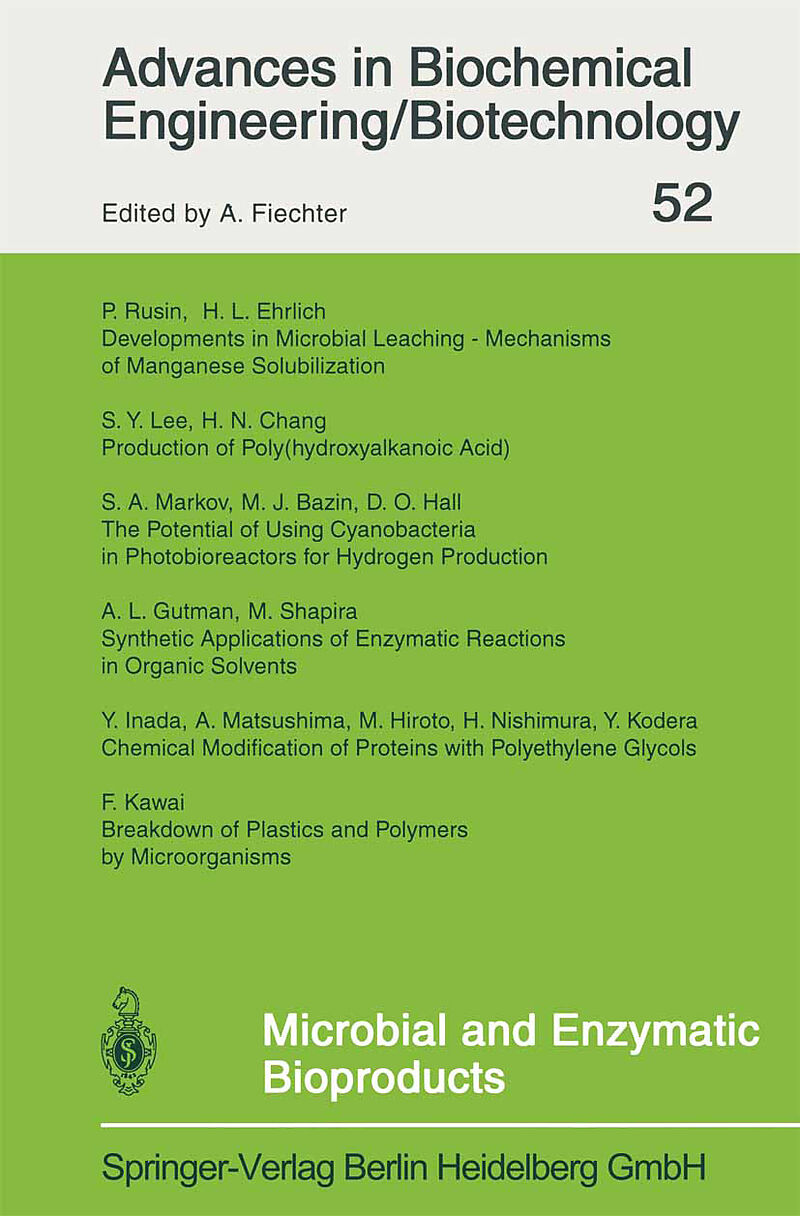 Klappentext Developments in mcirobial leaching-mechanisms of manganese solubilization.- Production of poly(hydroxyalkanoic acid).- The potential of using cyanobacteria in photobioreactors for hydrogen production.- Synthetic applications of enzymatic reactions ...