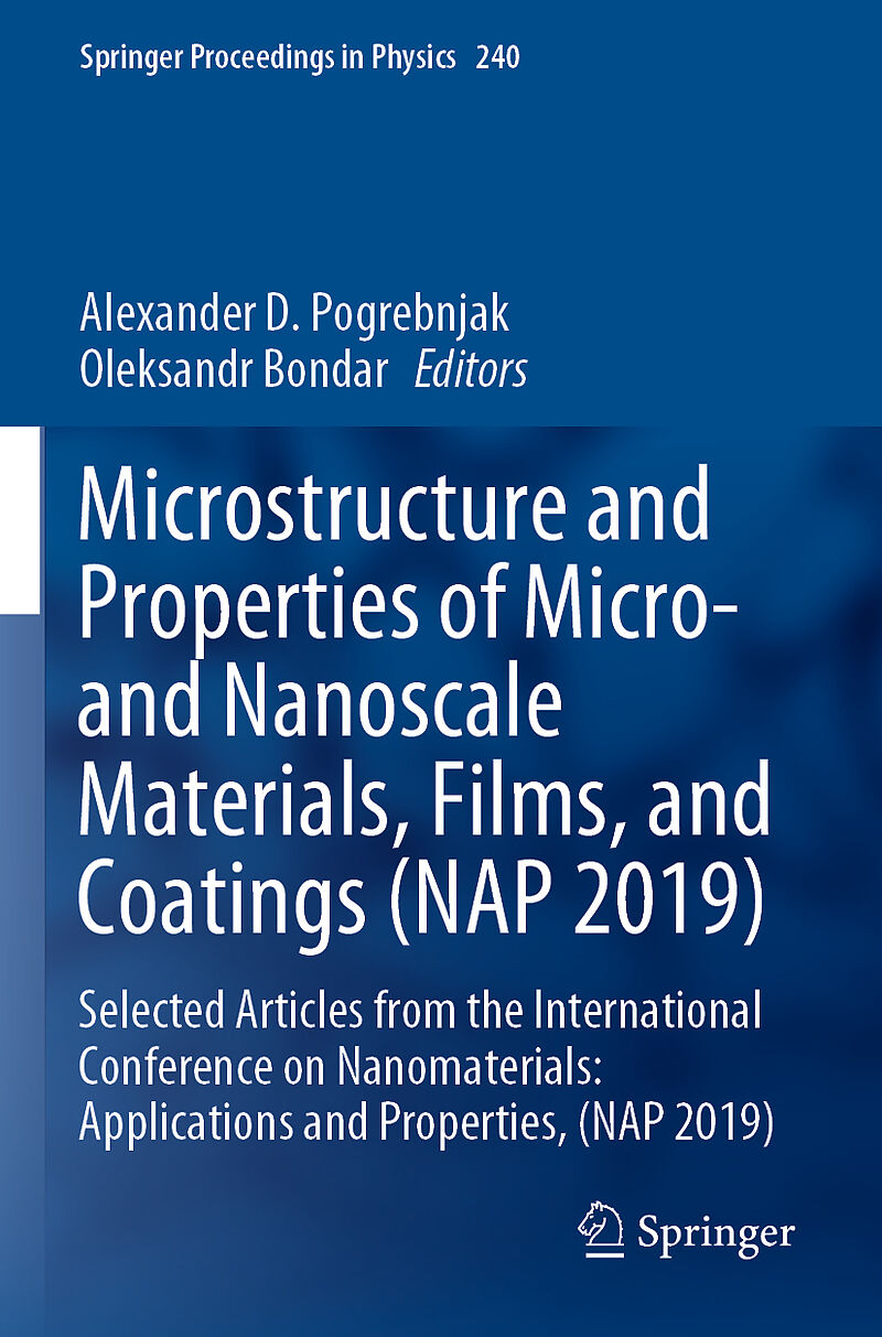 Electrical and Magnetic Behavior of GdOH Thin Films: a Search for Hydrogen Anion Superconductivity.- Electrical Properties of Heterojunction n-MoOx/p-Cd3In2Te6.- Transport Properties of Cubic Cuprous Iodide Films Deposited by Successive Ionic Layer Adsorption and Reaction.- Optical Absorption and Refractive Index of X-ray Irradiated Cu6PSe5I-based Thin Film.- Study of the Correlations between the Dynamics of Thermal Destruction and the Morphological Parameters of Biogenic Calcites by the Method of Thermoprogrammed Desorption Mass Spectrometry (TPD-MS).- Floquet-bloch Waves in Semiconductor Magnetophotonic Crystals.- Investigation of the Process of Spatial Self-organization of Linear Defects in Nanocrystalline Materials.- Method for Analysis XPS Data of Nanolayered Samples.- Temperature Dependence of Conductivity in Composite Film of Single-walled Carbon Nanotubes with Graphene Oxide.- Structure and Properties of Nitride Coatings Based on Ti and Cr Synthesized by PIII&D Technique.- Features of the Microstructure of Multilayered (TiAlSiY)N/MoN Coatings Prepared by CA-PVD and their Influence on Mechanical Properties.- Changing Cohesive Energy Between Atoms in Metal-to-Metal Transition Layer for FeSn and FeCuSn Compounds in the Course of Spark Alloying Process.- New Process for Forming Multicomponent Wear-Resistant Nanostructures by Electrospark Alloying Method.- Effect of Structure on the Properties of Composite Cr3C2 + NiCr Coatings.- Combined Magnetron-Ion-Source System for Reactive Synthesis of Complex Nanostructured Coatings.- AlCoNiFeCrTiV High-Entropy Coatings Prepared by Electron-Beam Cladding.- A Novel Method for the Formation of Silver-containing Nanocomposites Thermochemical Reduction of Ag+ Ions in Polymer Films.- Application of Multicomponent Wear-resistant Nanostructures Formed by Electrospark Allowing for Protecting Surfaces of Compression Joints Parts.- Preparation, Properties and Application of Miscanthus Nanocellulose as Coating Layer.- Effect of Thermomechanical and Ultrasonic Treatment on the Properties of Amorphous Alloys.- Nanostructured Magnesium Oxide Layers Synthesized on Flexible Substrates for Filtering Elements.- Surface Phosphorylated Activated Carbons: Preparation and Acidity Studies.- Flexible Thermostable Metal Spin-valves Based on Co, Cu, Fe, Au, Ru Thin Films.- Formation of Composite Reinforced Coating by Chemical Deposition and Chemical-thermal Treatment of Boron and Carbon.- The Effect of the Transition from Layered to Granular Structures on the Magnetoresistive Properties in the Systems Based on FexNi100-x and Cu.- Enhancement of the Wear Resistance of Tungsten Cobalt Carbide Plates Using Ion Implantation and Al-Si-N Coatings.- Contact Melting in Ag/Ge Layered Nanofilms: Critical Thickness and Onset Temperature.- Characteristics of Nanocomposites Formed on the Steel Surface Contacting with Precious Metal Solutions.- Increase of Mechanical Properties of Weld Metal of High-Strength Low-Alloy Steels.- Effect of Growth Conditions on Structural and Optical Properties of SnS2 Thin Film.- Effect of Mn Doping on the Optical Properties of Chalcogenide Compounds ZnS and ZnTe.- Magneto-optical and Magnetic Properties of Three-layer Films Based on Permalloy and Copper.- Size-dependent Melting Behavior of Silver Nanoparticles: a Molecular Dynamics Study.- Fabrication and Pulsed Laser Modification of Antireflective Composite Materials for the Visible and Near-IR Ranges.- Photo- and Electroluminescence of Layered Structures Based on Silicon Oxide and Nitride Films.- Influence of Hydrogen Annealing on Ordering in FePd Films with Ag Underlayer.- Thermal Dispergation of Pb-In Alloys Films on the Molybdenum Substrate.- Structure and Low-temperature Properties of U-15 at.% T Alloys (T = Mo, Nb, Pt, Ru, Ti).- Multilayer PECVD Si-C-N Films.