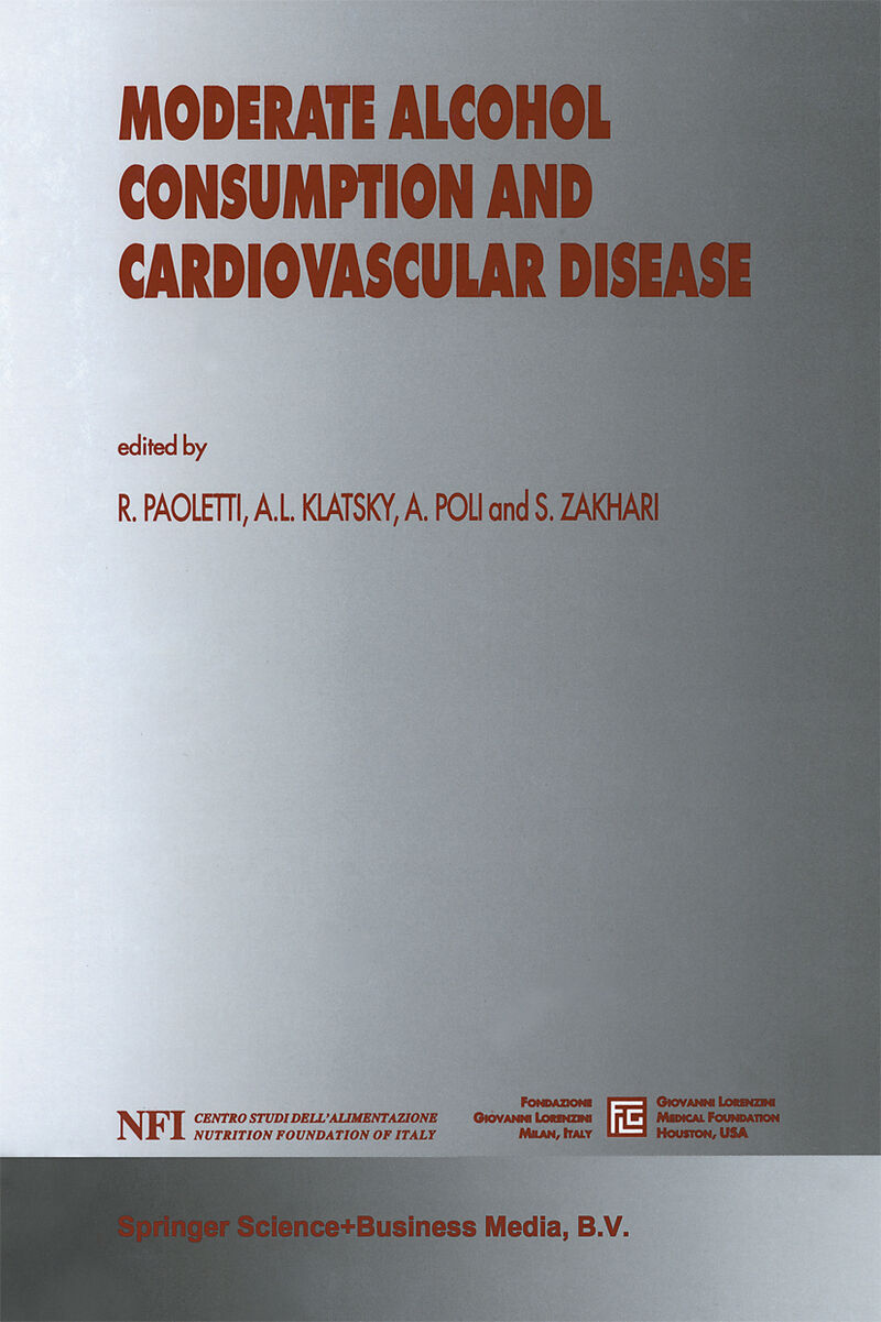 The effects of alcohol consumption on human health have fuelled a vigorous scientific debate in recent years. This volume, based on the scientific sessions of the International Meeting on MODERATE ALCOHOL CONSUMPTION AND CARDIOVASCULAR DISEASE, held in Venice ...The effects of alcohol consumption on human health have fuelled a vigorous scientific debate in recent years. This volume, based on the scientific sessions of the International Meeting on MODERATE ALCOHOL CONSUMPTION AND CARDIOVASCULAR DISEASE, held in Venice October 30-31, 1999, is intended to offer an up-to-date view of the most recent information on this complex topic. While comprehension ofthe damages associated with alcohol abuse has improved, an increasing number of epidemiological studies performed in different countries of the world, have shown that individuals consuming moderate amounts of alcohol (l 0-30 g/day, approximately equivalent to not more than two drinks per day in men and one drink per day in women) are less affected by acute coronary events than total abstainers. The apparent protection is evident (the rate of coronary events in most studies is reduced by about 30%) and has been observed and documented among various population groups (men, women, several racial groups, middle-aged and older individuals). Protection is seen in patients with no known history of coronary heart disease, as well as in those with coronary heart disease, diabetes, etc. Recent data suggest that the protection induced by a moderate alcohol use extends to the risk of ischemic strokes and of ischemic damage to the lower limbs. Since adverse alcohol effects are less frequent at these low daily intakes, total mortality is also favourably affected in moderate alcohol consumers as compared to abstainers.