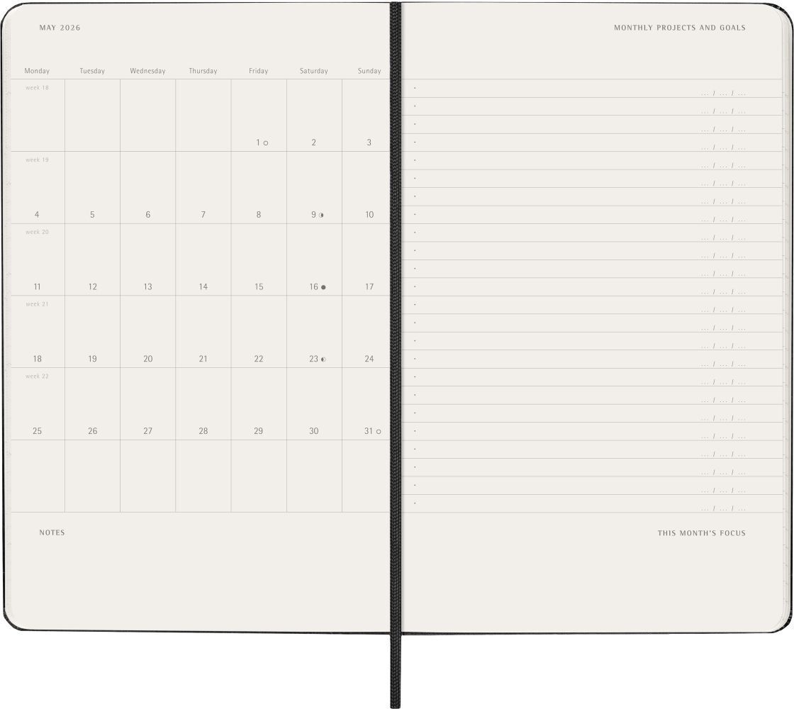 Moleskine 12 Monate Pro Wochen Notizkalender 2026, Pro Large/A5, 1 Wo = 2 Seiten, vertikal, Spalten für Notizen, fester Einband, Schwarz
