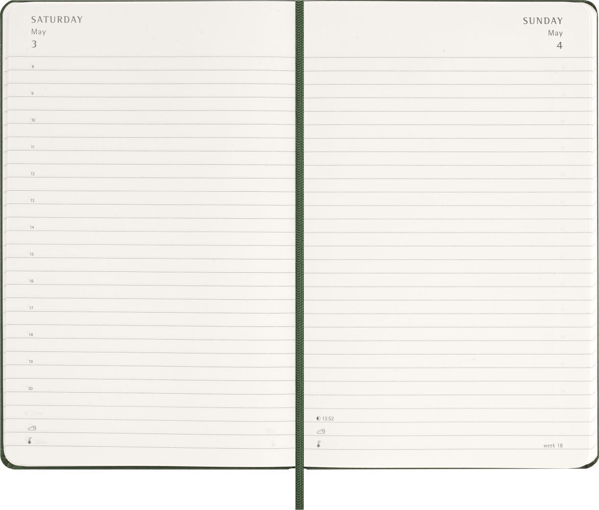 1 Tag = 1 Seite, Fester Einband, Myrtengrün. Klappentext Der Moleskine Tageskalender ist von Januar bis Dezember datiert. Der beliebte Kalender mit einer eigenen Seite pro Tag ist in zahlreichen Farben erhältlich, um jeden Tag im Jahr ausführlich festzuhalten....