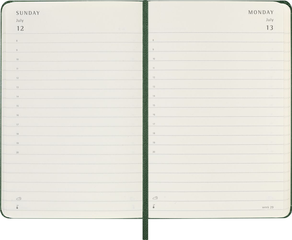 1 Tag = 1 Seite, Fester Einband, Myrtengrün. Klappentext Der Moleskine Tageskalender reicht von Januar bis Dezember. Der beliebte Kalender mit einer eigenen Seite pro Tag ist in zahlreichen Farben erhältlich, um jeden Tag im Jahr ausführlich festzuhalten. MOLE...