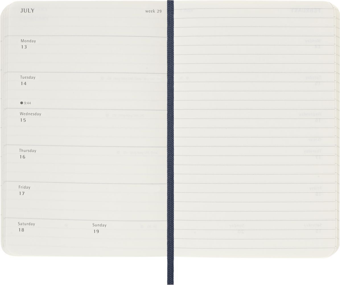 Moleskine 12 Monate Wochen Notizkalender 2026, Pocket/A6, 1 Wo = 1 Seite, rechts linierte Seite, Weicher Einband, Saphir