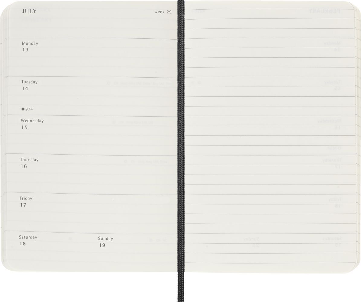 Moleskine 12 Monate Wochen Notizkalender 2026, Pocket/A6, 1 Wo = 1 Seite, rechts linierte Seite, Weicher Einband, Schwarz