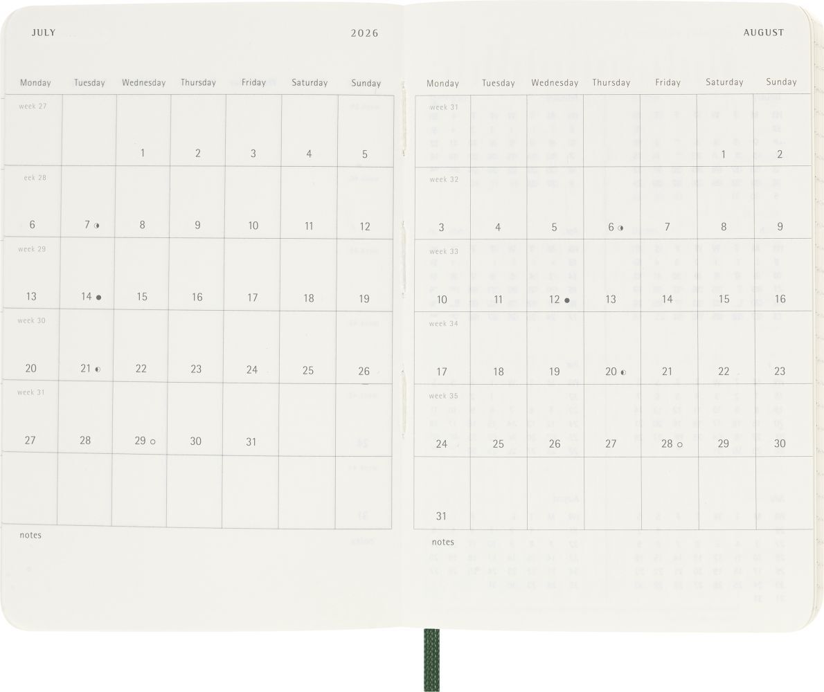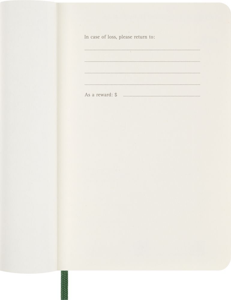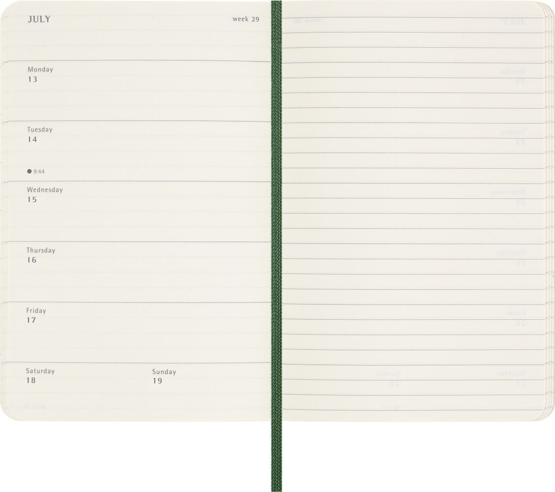 Moleskine 12 Monate Wochen Notizkalender 2026, Pocket/A6, 1 Wo = 1 Seite, rechts linierte Seite, Weicher Einband, Myrtengrün