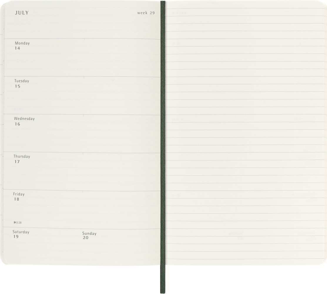 1 Wo = 1 Seite, rechts linierte Seite, weicher Einband. Klappentext Der 18-Monate-Wochen-Notizkalender von Moleskine reicht von Juli bis Dezember. Mit den Wochenterminen auf der linken Seite und einer linierten rechten Seite mit Platz für Notizen und Ideen ist...