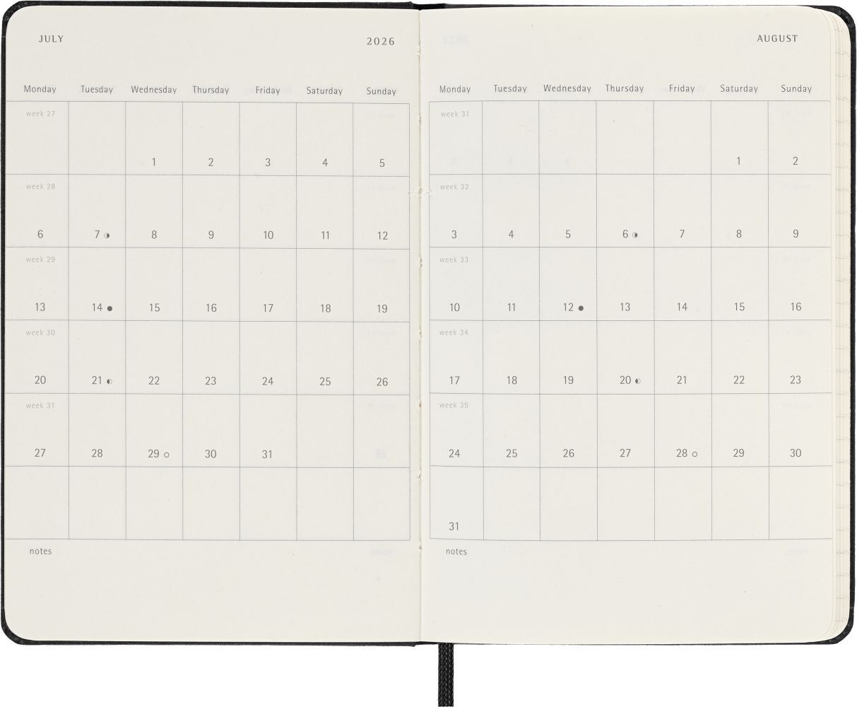 1 Wo = 2 Seiten, Horizontal, Fester Einband. Klappentext Der horizontale 18-Monate-Wochenkalender von Moleskine reicht von Juli bis Dezember. Der beliebte, horizontal aufgebaute Wochenkalender mit jeweils einer Woche über zwei Seiten verteilt (Montag, Dienstag...