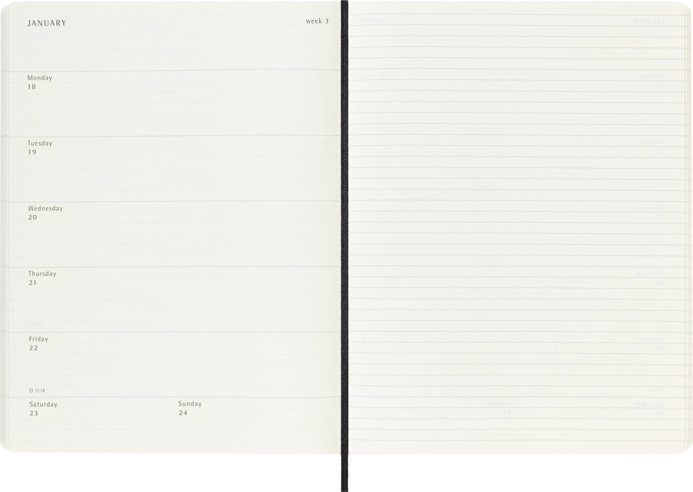Der 18-Monats-Wochen-Notizkalender von Moleskine ist von Juli bis Dezember datiert. Mit den Wochenterminen auf der linken Seite und einer linierten rechten Seite mit Platz für Notizen und Ideen ist dieses beliebte Kalenderformat perfekt für Lernende, Lehrkräft...