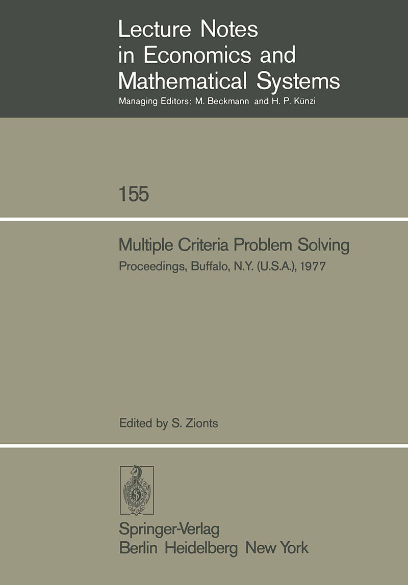 The objective of this conference was to foster a healthy exchange of ideas and experience in the domain of multiple criteria problem solving. This conference was an outgrowth of an earlier conference I organized with Herve Thiriez at CESA, Jouy-en-Josas, Franc...