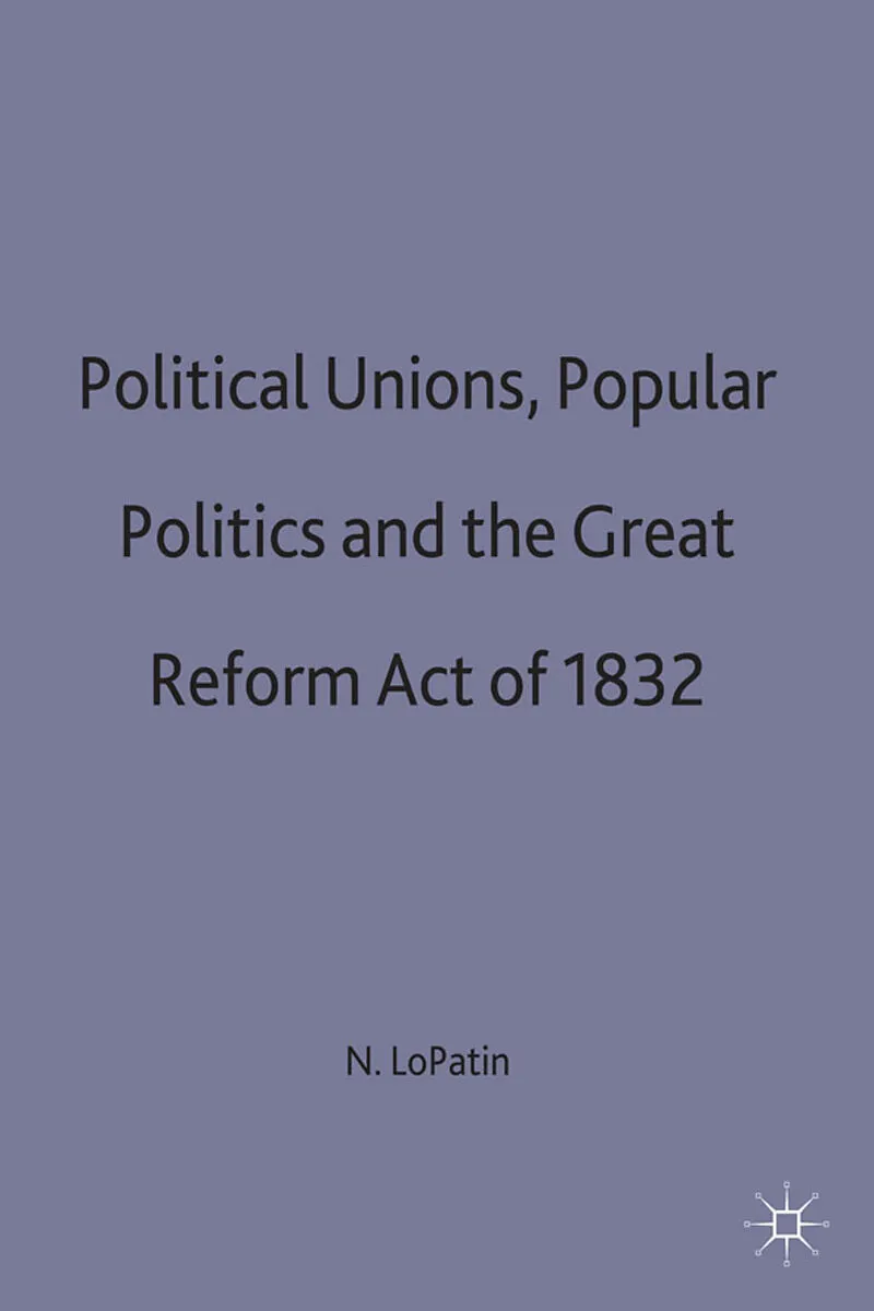 This book is the first on the creation, development and influence of popular politics, specifically the role of Political Unions, on the Great Reform Act of 1832. Political Unions and the force of public opinion played a vital role in seeing the Reform Bill th...