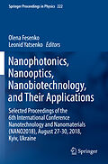 PartI: Nanophotonics and nanooptics.- Chapter1: SiO2/n-Si template for copper nanostructures formation.- Chapter2: Synthesis, morphology, structure and luminescence properties of Bi-containing phosphates: review and detailed consideration on the example of Pr3+ - doped BiPO4 nanopowders.- Chapter3: Anomalous Change of Refractive Index for Au Sols under Laser Illumination.- Chapter4: Development of the waveguide photonic crystal structures formed by distribution of nanoparticles in polymer matrix.- Chapter5: Optical phenomena in nanoscale tin dioxide films obtained by means of polymersf.- Chapter6: Optical Properties of PolytetrafluoroethyleneCarbon Nanotubes Composite in the Light Spectrum Range 3201000 nm.- Chapter7: Based on pneumatic photonic structures high accuracy measurement procedure for the universal gas constant.- Chapter8: Nanoscale photocatalytic layers with titania on stainless steel foil.- Chapter9: New methacrylicpolymers with heterocyclic analogs of stilbene in side chain - promising materials for optoelectronics.- Chapter10: Electro-Transport Properties of Ultraviolent irradiated carbon nanotubes.- Chapter11: New Method for rapid Digital Hologram Processing.- Chapter12: Theory of Exciton States in Nanosystems Containing Dielectric Quantum Dots.- PartII: Nanobiotechnology.- Chapter13: Magnetic resonance nanotherapy for malignant tumors.- Chapter14: Nanoporous biochar for removal of toxic organic compounds from water.- Chapter15: The Regularities of Sorption of Substances of Different Nature by pH-sensitive Acrylic Hydrogels for Plant Nanofertilizer Formation.- Chapter16: Effect of porosity on ion transport through polymers and polymer-based composites containing inorganic nanoparticles (review).- chapter17: Features of the influence of UFS / raffinose nanocomposites on in vitro cultivation of a gamets of swine.- Chapter18: The infrared and Raman spectra of acetaminophen cholesterol complex: DFT study.- Chapter19: Change in functional state of bone marrow-derived mesenchymal stem cells after incubation with silver nanoparticles.- PartIII: Applications.- Chapter20: Challenges in Studying the Incorporation of Nanomaterials to Building Materials on Microbiological Models.- Chapter21: Computational studies of adsorption of toxic molecules and anions on the surface of doped and functionalized carbon nanotubes.- Chapter22: Single-molecule conductance theory using different orbitals for different spins: Applications to -electrons in graphenes molecules.- Chapter23: Nanostructure complexes in water from the position of SPE-effect and theory of water, created by J. Preparata.- Chapter24: Nanocomposite hydrogels containing silver nanoparticles as materials for wound dressings.- Chapter25: Green synthesis of magnetic spinel nanoparticles.- Chapter26: Properties of ultra-thin lipid layers surrounding boron-nitride nanotube computer simulation study.- Chapter27: Properties of n-cyanobifenyl nematogene phases formed between carbon nanotube arrays computer simulation study.- Chapter28: Tryptophan-stabilized plasmonic Fe3O4/Ag nanoparticles.- Chapter29: Influence of Mg content on structural and magnetic properties of green synthesized Li0.5-0.5xMgxFe2.5-0.5xO4 (0.0 £ x £ 0.8) nanoferrites.- Chapter30: Current State of Fuel Cell Research.- Chapter31: Synthesis and study of methacrylic monomers and polymers on the basis of aurones. <p