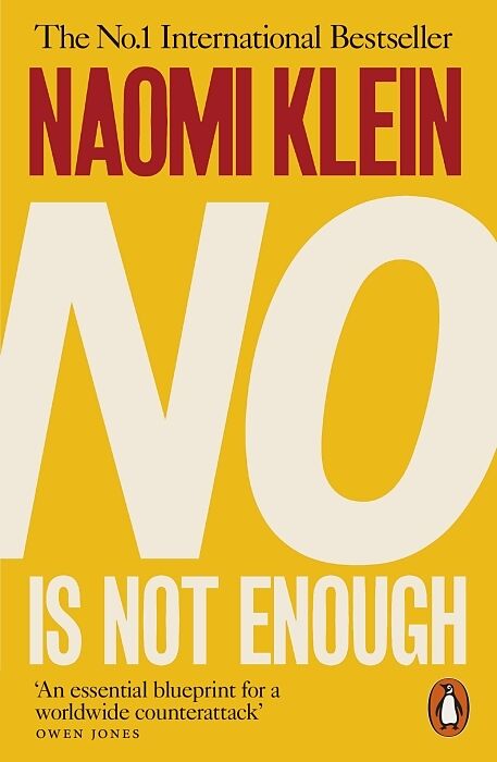 .. The New York Times and Sunday Times Bestseller.. 'An ordinary person's guide to hope. Read this book' Arundhati Roy 'As accessible as it is brilliant' Owen Jones 'A genuine page turner' Michelle Alexander Naomi Klein - award-winning journalist, bestselling ..... The New York Times and Sunday Times Bestseller.. 'An ordinary person's guide to hope. Read this book' Arundhati Roy 'As accessible as it is brilliant' Owen Jones 'A genuine page turner' Michelle Alexander Naomi Klein - award-winning journalist, bestselling author of No Logo , The Shock Doctrine and This Changes Everything , scourge of brand bullies and corporate liars - gives us the toolkit we need to survive our surreal, shocking age. 'This is a look at how we arrived at this surreal political moment, how to keep it from getting a lot worse, and how, if we keep our heads, we can flip the script.' Remember when love was supposed to Trump hate? Remember when the oil companies and bankers seemed to be running scared? What the hell happened? And what can we do about it? Naomi Klein shows us how we got here, and how we can make things better. No Is Not Enough reveals, among other things, that the disorientation we're feeling is deliberate. That around the world, shock political tactics are being used to generate crisis after crisis, designed to force through policies that will destroy people, the environment, the economy and our security. That extremism isn't a freak event - it's a toxic cocktail of our times. From how to trash the Trump megabrand to the art of reclaiming the populist argument, Naomi Klein shows all of us how we can break the spell and win the world we need. Don't let them get away with it. 'Who better than Naomi to make sense of this madness, and help us find a way out? A top-of-the-stack must read' Michael Stipe 'Naomi Klein's new book incites us brilliantly to interweave our No with a programmatic Yes. A manual for emancipation' Yanis Varoufakis 'Magnificent ... a courageous coruscating counterspell' Junot Diaz