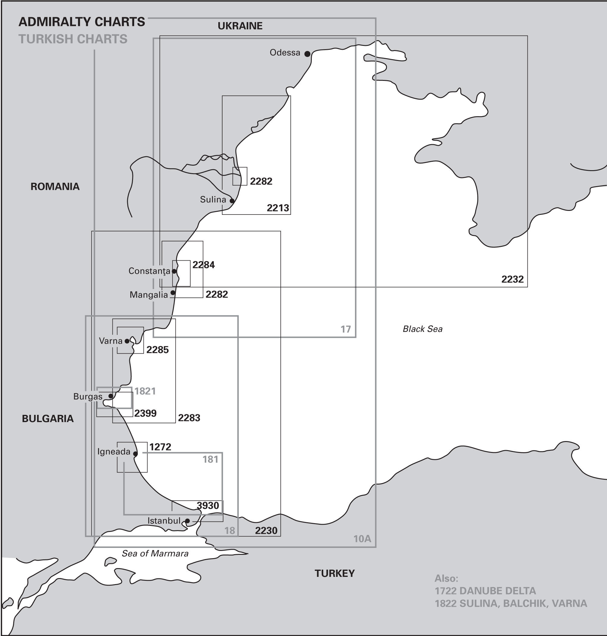 Covers the popular coasts of Bulgaria and Romania.