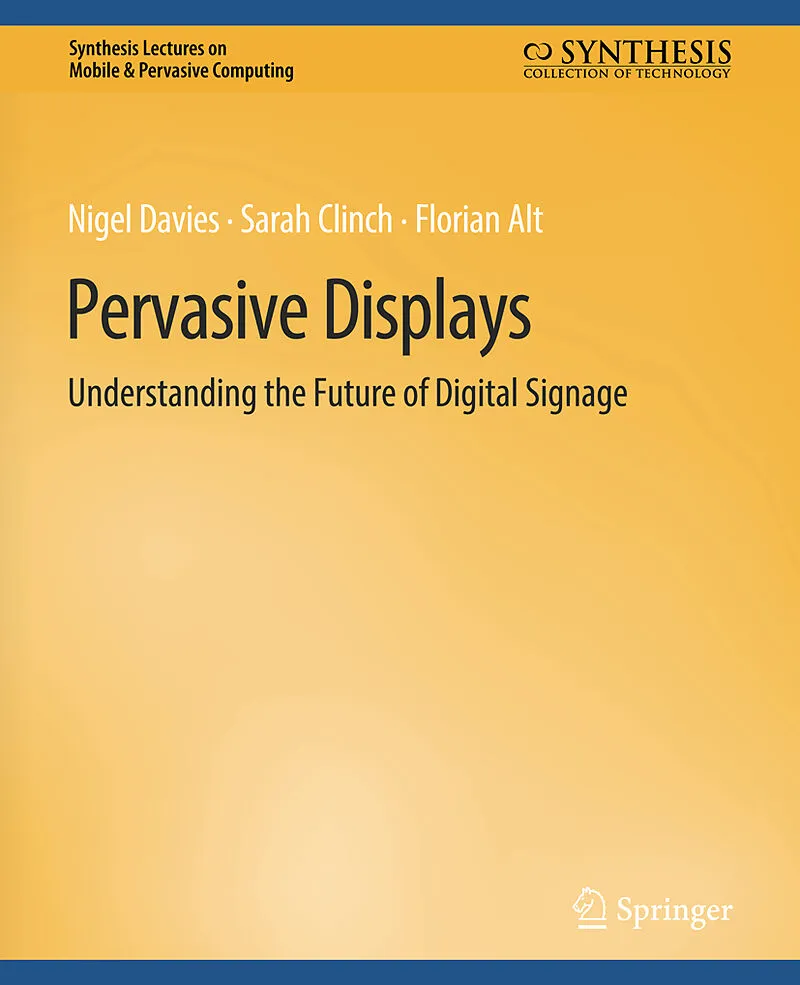 Fueled by falling display hardware costs and rising demand, digital signage and pervasive displays are becoming ever more ubiquitous. Such systems have traditionally been used for advertising and information dissemination, with digital signage commonplace in s...Fueled by falling display hardware costs and rising demand, digital signage and pervasive displays are becoming ever more ubiquitous. Such systems have traditionally been used for advertising and information dissemination, with digital signage commonplace in shopping malls, airports and public spaces. While advertising and broadcasting announcements remain important applications, developments in sensing and interaction technologies are enabling entirely new classes of display applications that tailor content to the situation and audience of the display. As a result, signage systems are beginning to transition from simple broadcast systems to rich platforms for communication and interaction. In this lecture, we provide an introduction to this emerging field for researchers and practitioners interested in creating state-of-the-art pervasive display systems. We begin by describing the history of pervasive display research, providing illustrations of key systems, from pioneering work on supporting collaboration to contemporary systems designed for personalized information delivery. We then consider what the near future might hold for display networks -- describing a series of compelling applications that are being postulated for future display networks. Creating such systems raises a wide range of challenges and requires designers to make a series of important trade-offs. We dedicate four chapters to key aspects of pervasive display design: audience engagement, display interaction, system software, and system evaluation. These chapters provide an overview of current thinking in each area. Finally, we present a series of case studies of display systems and our concluding remarks.