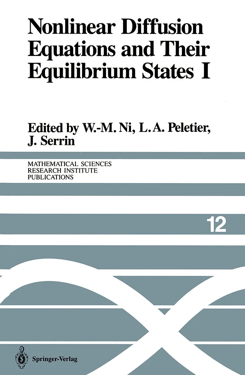 In recent years considerable interest has been focused on nonlinear diffu sion problems, the archetypical equation for these being Ut = D.u + f(u). Here D. denotes the n-dimensional Laplacian, the solution u = u(x, t) is defined over some space-time domain of ...In recent years considerable interest has been focused on nonlinear diffu sion problems, the archetypical equation for these being Ut = D.u + f(u). Here D. denotes the n-dimensional Laplacian, the solution u = u(x, t) is defined over some space-time domain of the form n x [O,T], and f(u) is a given real function whose form is determined by various physical and mathematical applications. These applications have become more varied and widespread as problem after problem has been shown to lead to an equation of this type or to its time-independent counterpart, the elliptic equation of equilibrium D.u + f(u) = o. Particular cases arise, for example, in population genetics, the physics of nu clear stability, phase transitions between liquids and gases, flows in porous media, the Lend-Emden equation of astrophysics, various simplified com bustion models, and in determining metrics which realize given scalar or Gaussian curvatures. In the latter direction, for example, the problem of finding conformal metrics with prescribed curvature leads to a ground state problem involving critical exponents. Thus not only analysts, but geome ters as well, can find common ground in the present work. The corresponding mathematical problem is to determine how the struc ture of the nonlinear function f(u) influences the behavior of the solution.