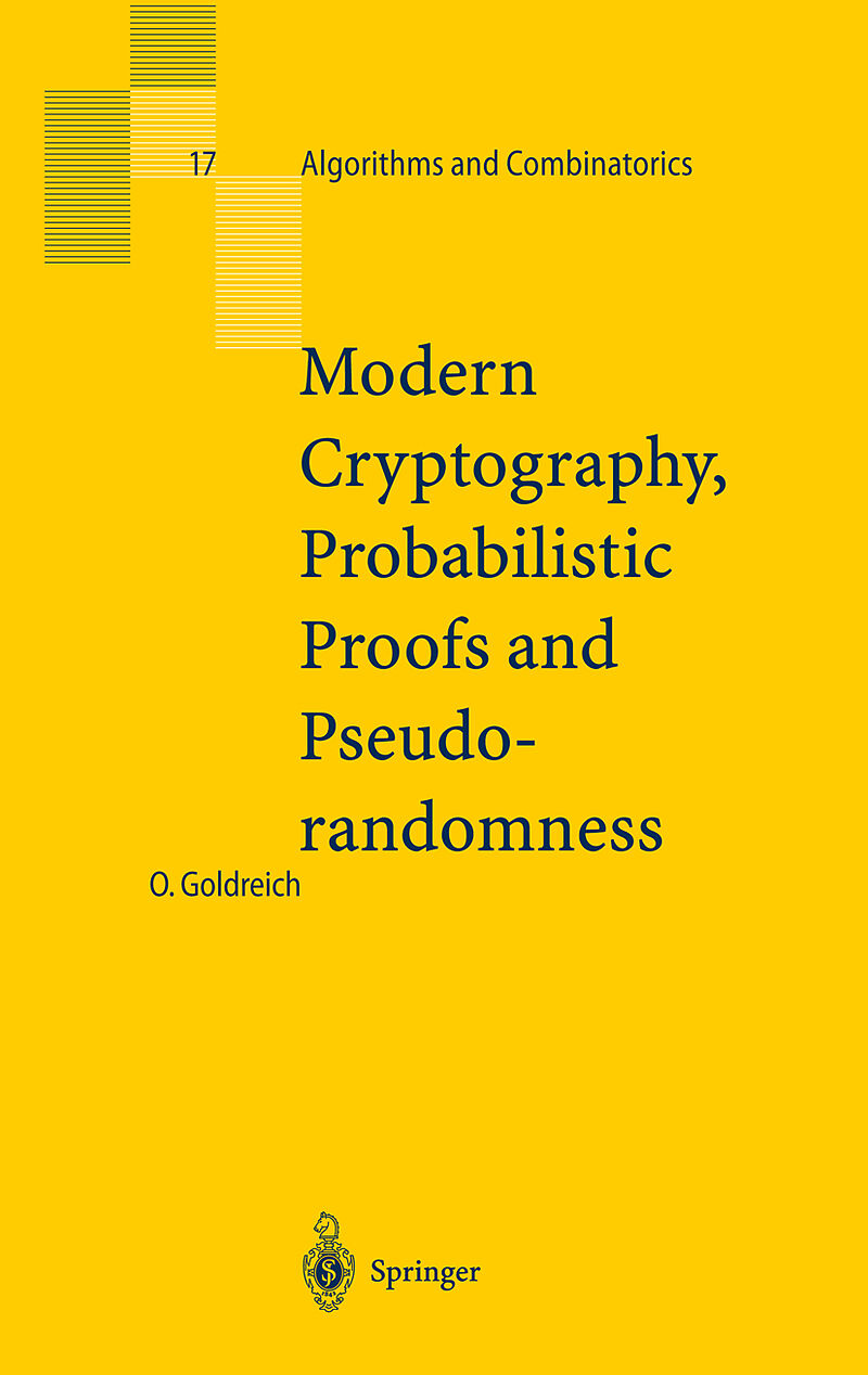 You can start by putting the DO NOT DISTURB sign. Cay, in Desert Hearts (1985). The interplay between randomness and computation is one of the most fas cinating scientific phenomena uncovered in the last couple of decades. This interplay is at the heart of mod...You can start by putting the DO NOT DISTURB sign. Cay, in Desert Hearts (1985). The interplay between randomness and computation is one of the most fas cinating scientific phenomena uncovered in the last couple of decades. This interplay is at the heart of modern cryptography and plays a fundamental role in complexity theory at large. Specifically, the interplay of randomness and computation is pivotal to several intriguing notions of probabilistic proof systems and is the focal of the computational approach to randomness. This book provides an introduction to these three, somewhat interwoven domains (i.e., cryptography, proofs and randomness). Modern Cryptography. Whereas classical cryptography was confined to the art of designing and breaking encryption schemes (or "secrecy codes"), Modern Cryptography is concerned with the rigorous analysis of any system which should withstand malicious attempts to abuse it. We emphasize two aspects of the transition from classical to modern cryptography: ( 1) the wide ning of scope from one specific task to an utmost wide general class of tasks; and (2) the move from an engineering-art which strives on ad-hoc tricks to a scientific discipline based on rigorous approaches and techniques.