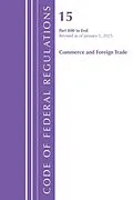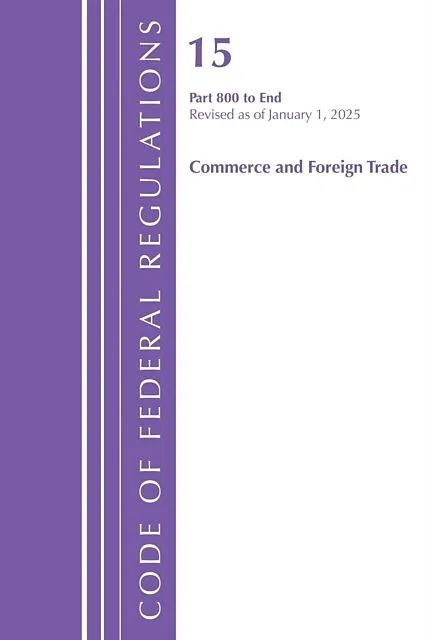A compilation of federal regulations, the CFRs are an authoritative source of government information representing broad subject areas. Title 15 Presents regulations governing the Department of Commerce and other agencies involved with commerce and foreign trad...