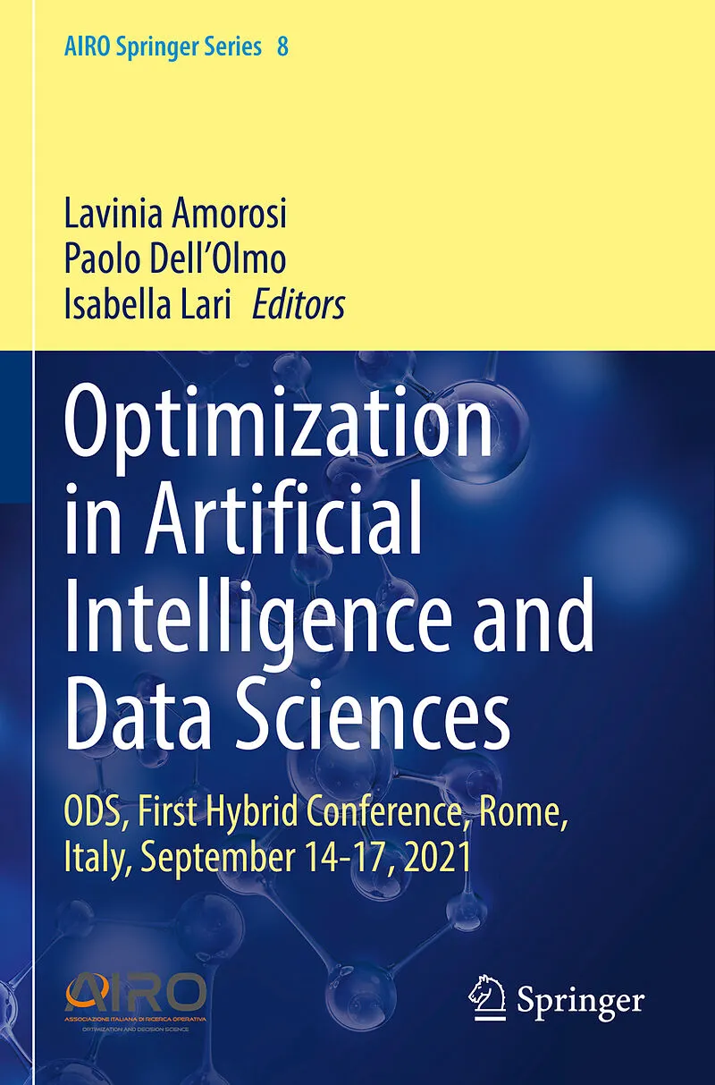 1 Mauro Passacantando and Fabio Raciti, A variational inequality approach to a class of network games with local complementarities and global congestion.- 2 Patrizia Daniele and Daniele Sciacca, A two-stage Variational Inequality formulation for a Game Theory Network Model for hospitalization in critic scenarios.- 3 Lorenzo Lampariello et al., On nested affine variational inequalities: the case of multi-portfolio selection.- 4 Rosita Guido et al., Hyper-Parameter Optimization in Support Vector Machine on unbalanced datasets using Genetic Algorithms.- 5 Giovanni Fasano and Massimo Roma, An improvement of the pivoting strategy in the Bunch and Kaufman decomposition, within Truncated Newton methods.- 6 Giulia Caselli et al., Mixed Integer Linear Programming for a Real-World Parallel Machine Scheduling Problem with Workforce and Precedence Constraints.- 7 Lavinia Amorosi et al., Scheduling K-mers Counting in a Distributed Environment.- 8 Nicolas Zufferey et al., Workload balancing at cross-docking platforms.- 9 Giovanni Righini and Pier Giorgio Villani, Knowledge before solutions: some reflections on a successful O.R. case study.- 10 Luigi Rarità, A genetic algorithm to optimize dynamics of supply chains.- 11 Georgia Fargetta and Laura Scrimali, Closed-Loop Supply Chain Network Equilibrium with online second-hand trading.- 12 Andrea Bettinelli et al., Design and optimization of a regional buffalo milk supply chain: a case study.- 13 Olivier Gallay et al., Truck-and-drone parcel delivery in the Alps.- 14 Giacomo Lanza et al., A fast heuristic approach for the assignment and sequencing storage location problem under a two level storage policy.- 15 Nicolas Zufferey et al., Local Search for Aircraft-Landing Planning.- 16 Annamaria Barbagallo, An Emission Pollution Permit System for Time-Dependent Transportation Networks Based on Origin-Destination Pairs.- 17 Daniel Bienstock et al., Power network design with line activity.- 18 Vassil Vassilev et al., Risk Assessment in Transactions under Threat as Partially Observable Markov Decision Process.- 19 Paola Cappanera et al., A decomposition approach to the Clinical Pathway Deployment for chronic outpatients with comorbidities.- 20 Fulvio De Santis and Stefania Gubbiotti, Optimal sample size for evidence and consensus in phase III clinical trials.- 21 Roberto Aringhieri et al., Novel applications of the team orienteering problem in health care logistics.- 22 Beatrice Bolsi et al., Optimizing a Dynamic Outpatient Facility System with Multiple Servers.- 23 Pranath Kumar Gourishetty et al., Global optimization of a turbine design via neural networks and an evolutionary algorithm.