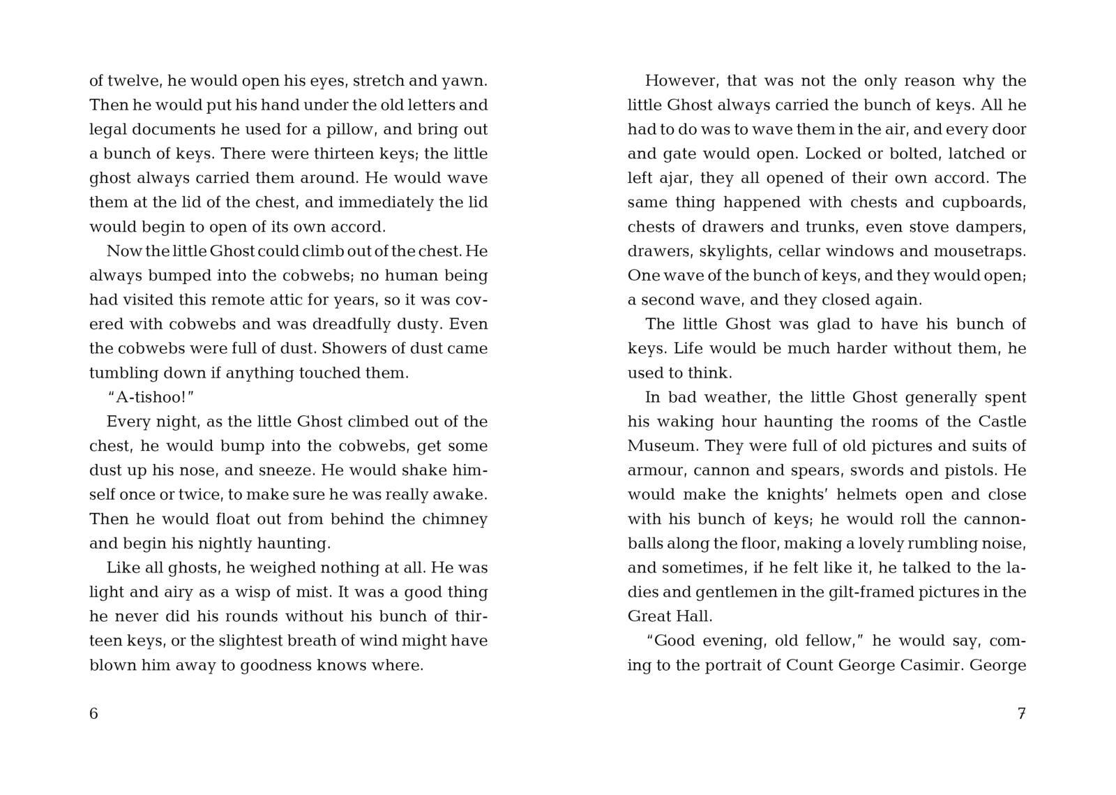 The little ghost had lived in Eulenstein Castle for hundreds of years. He was one of those harmless little ghosts who haunt places by night, and never hurt anyone unless they are provoked.