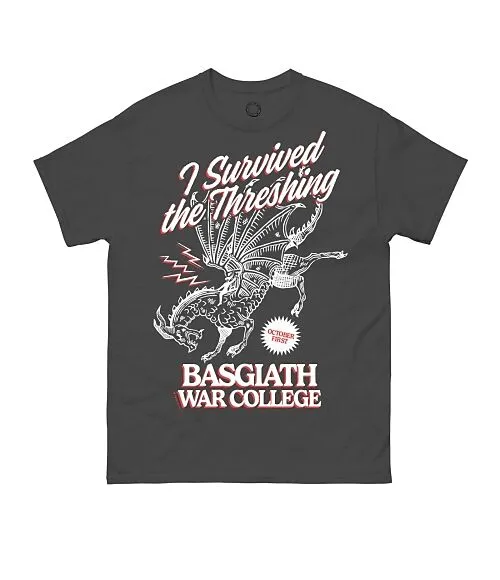 Fourth Wing: I Survived the Threshing;unisex t-shirt Threshing is the event that takes place annually on October 1, where first-year cadets bond to the dragon that they will ride for the rest of their lives. Product Details Size & Fit