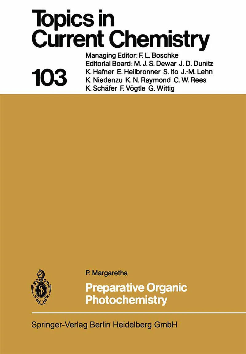 Inhalt Photochemical cleavage reactions in synthetic organic chemistry.- Photochemical rearrangement reactions in synthetic organic chemistry.- Photoaddition reactions in synthetic organic chemistry.- Photochemical substitution reactions in synthetic organic c...