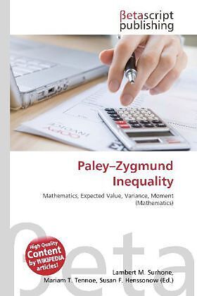 Please note that the content of this book primarily consists of articles available from Wikipedia or other free sources online. In mathematics, the Paley Zygmund inequality bounds the probability that a positive random variable is small, in terms of its mean a...