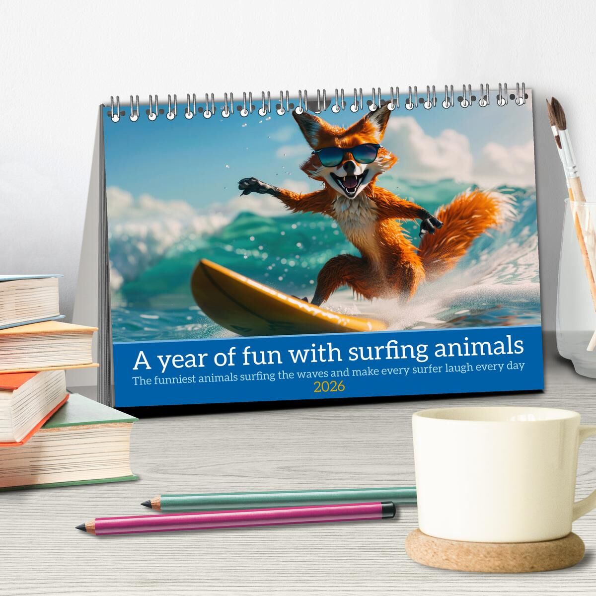 A year of fun with surfing animals (Desk Calendar 2026 DIN A5 landscape), CALVENDO 12 Month DeskCalendar