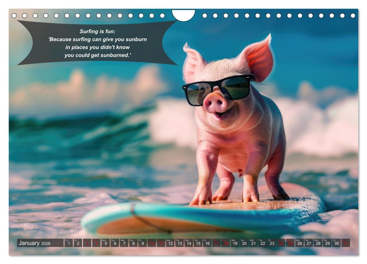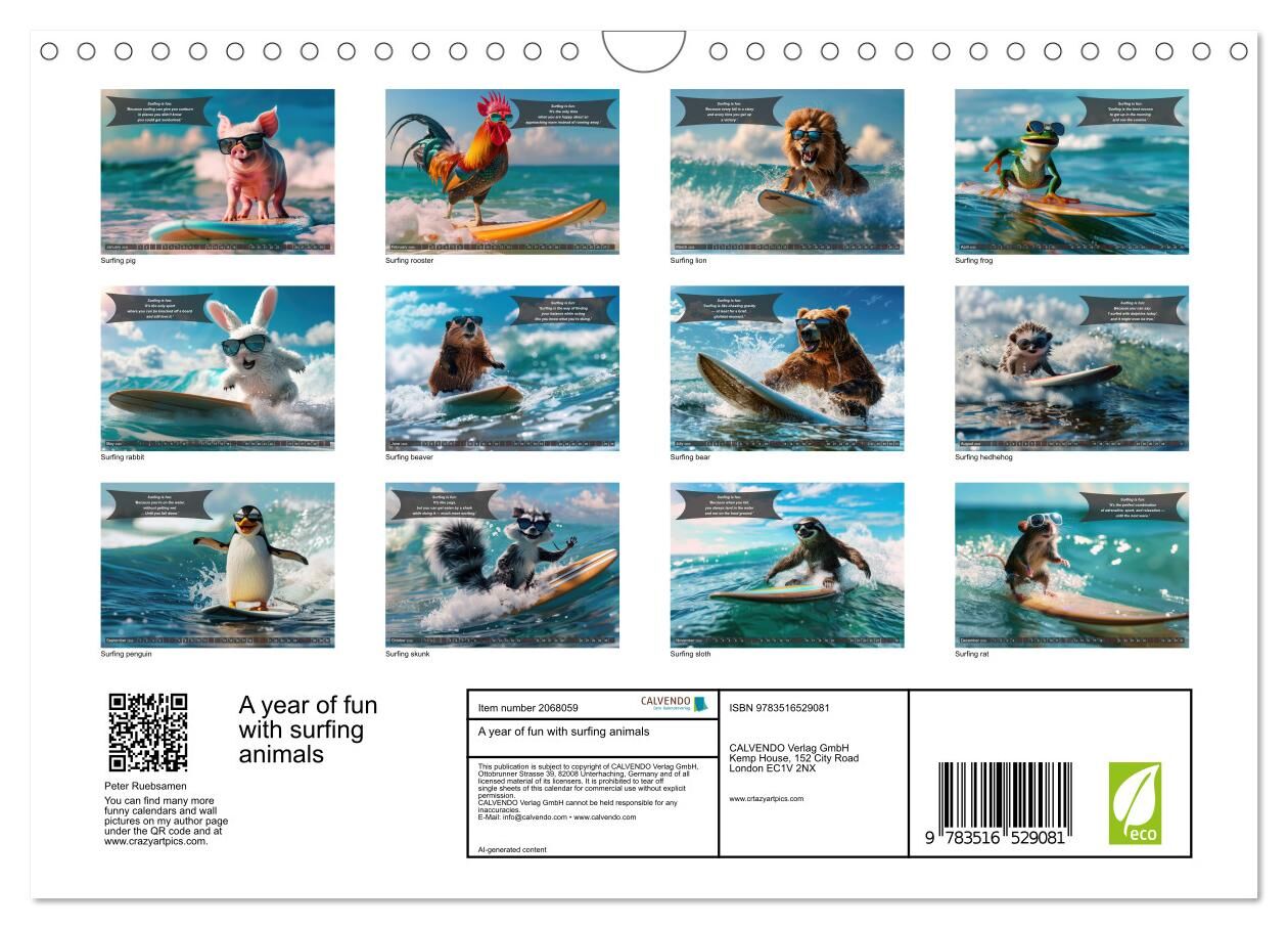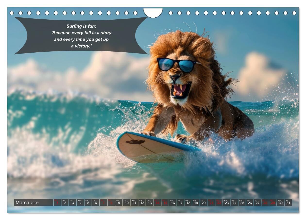 Immerse yourself in the world of waves with our unique annual calendar 'A year of fun with surfing animals'. Each month you can expect a new, adorable AI-generated image of animals mastering the art of surfing. From determined lions riding the perfect wave to ...