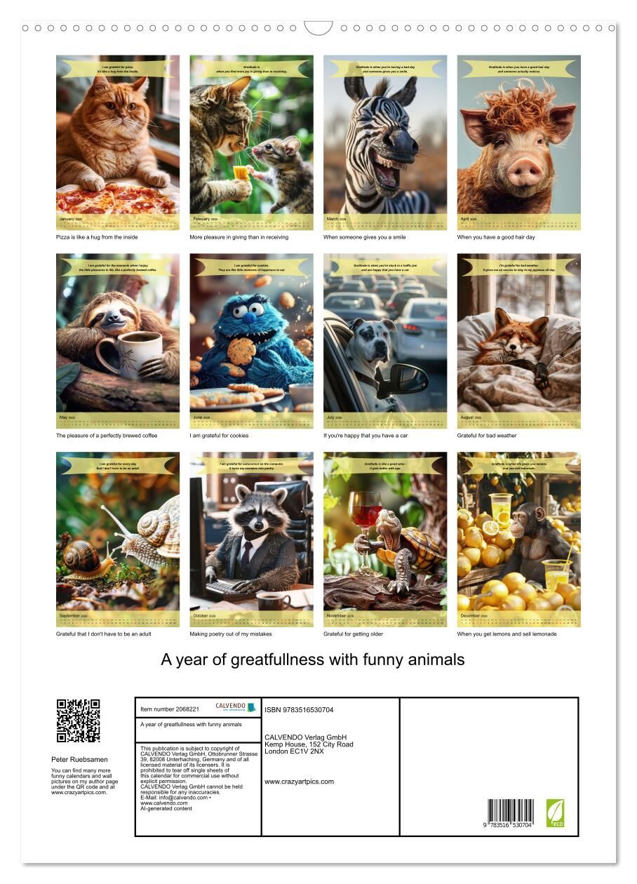 A year of greatfullness with funny animals (Wall Calendar 2026 DIN A2 portrait), CALVENDO 12 Month Wall Calendar
