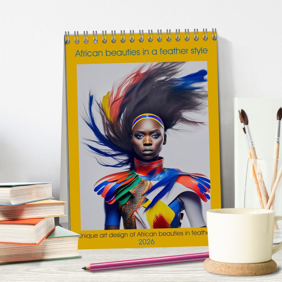 Step into a world where beauty and artistry intertwine with our exclusive African beauties in a feather style annual calendar. Each month unveils a stunning portrait of grace and elegance, showcasing beautiful ladies adorned in unique feather art designs creat...