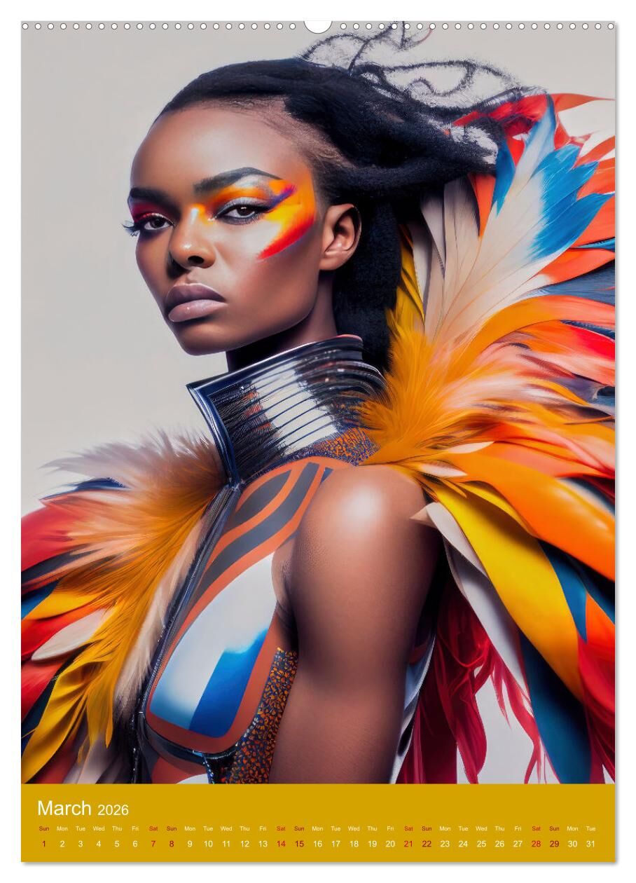 African beauties in a feather style (Wall Calendar 2026 DIN A2 portrait), CALVENDO 12 Month Wall Calendar