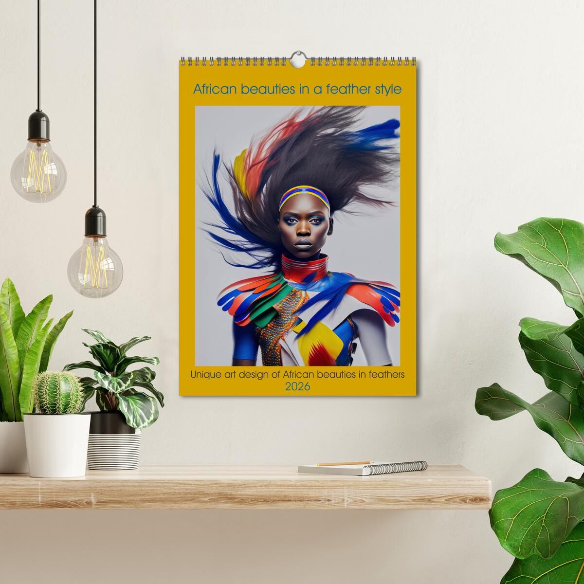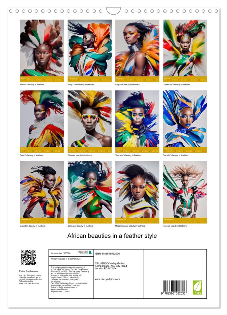 Step into a world where beauty and artistry intertwine with our exclusive African beauties in a feather style annual calendar. Each month unveils a stunning portrait of grace and elegance, showcasing beautiful ladies adorned in unique feather art designs creat...