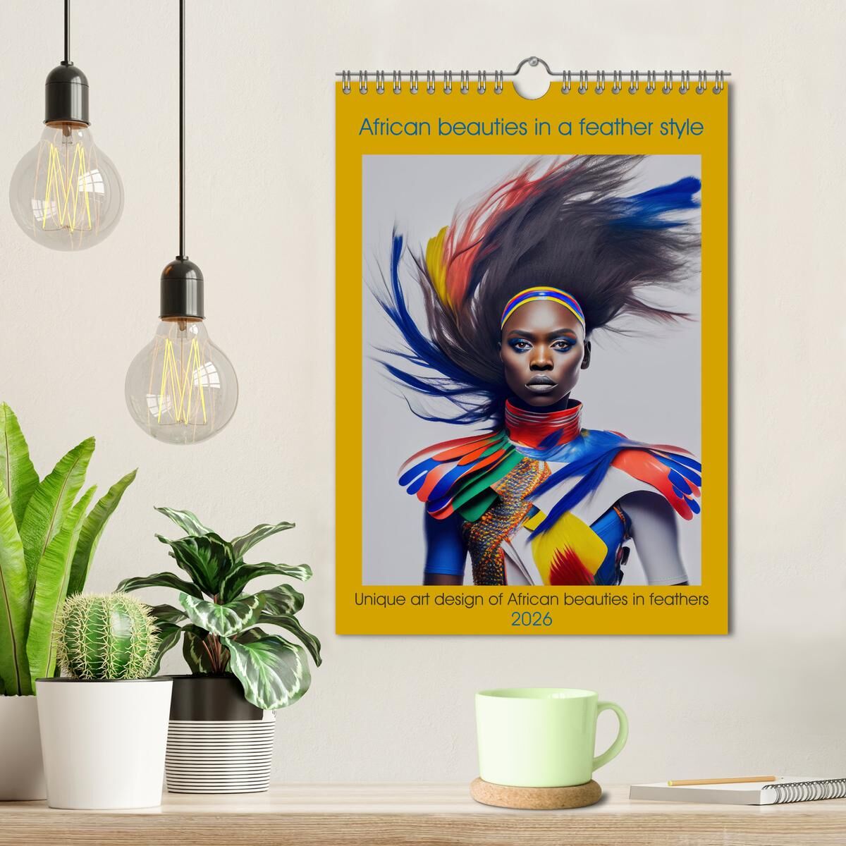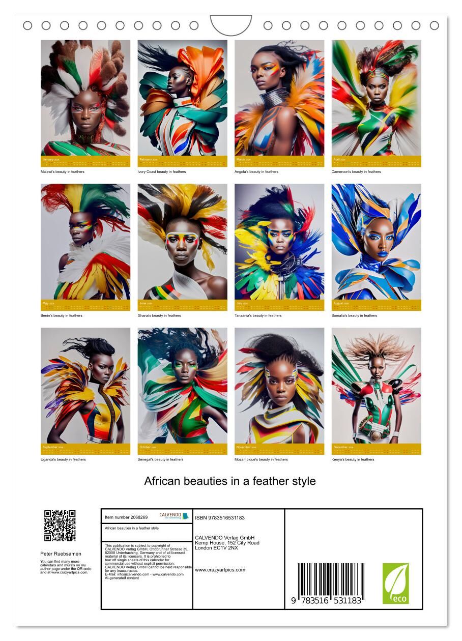 Step into a world where beauty and artistry intertwine with our exclusive African beauties in a feather style annual calendar. Each month unveils a stunning portrait of grace and elegance, showcasing beautiful ladies adorned in unique feather art designs creat...