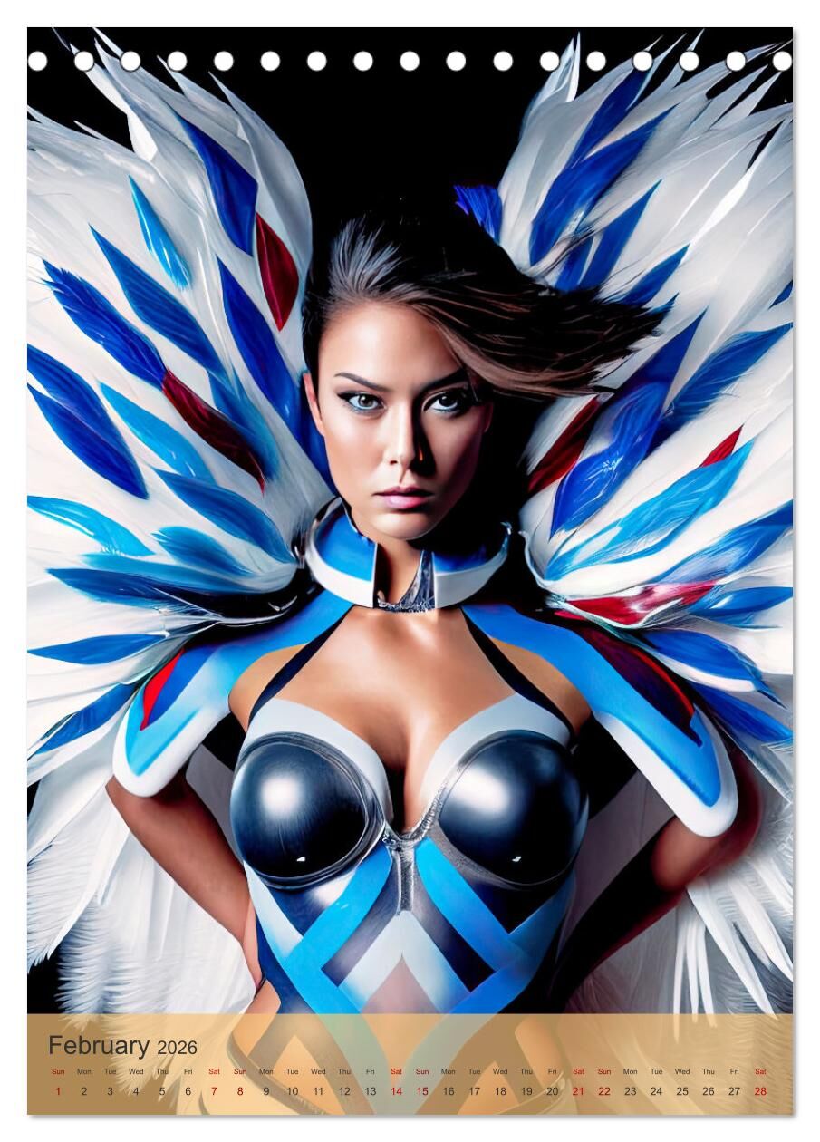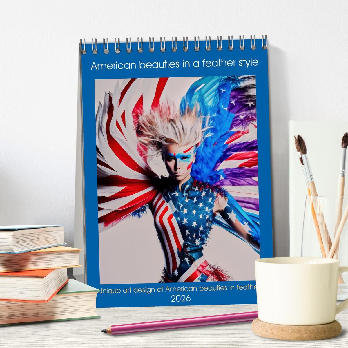 Step into a world where beauty and artistry intertwine with our exclusive 'American Beauties in a Feather Style' annual calendar. Each month unveils a stunning portrait of grace and elegance, showcasing beautiful ladies adorned in unique AI feather art designs...