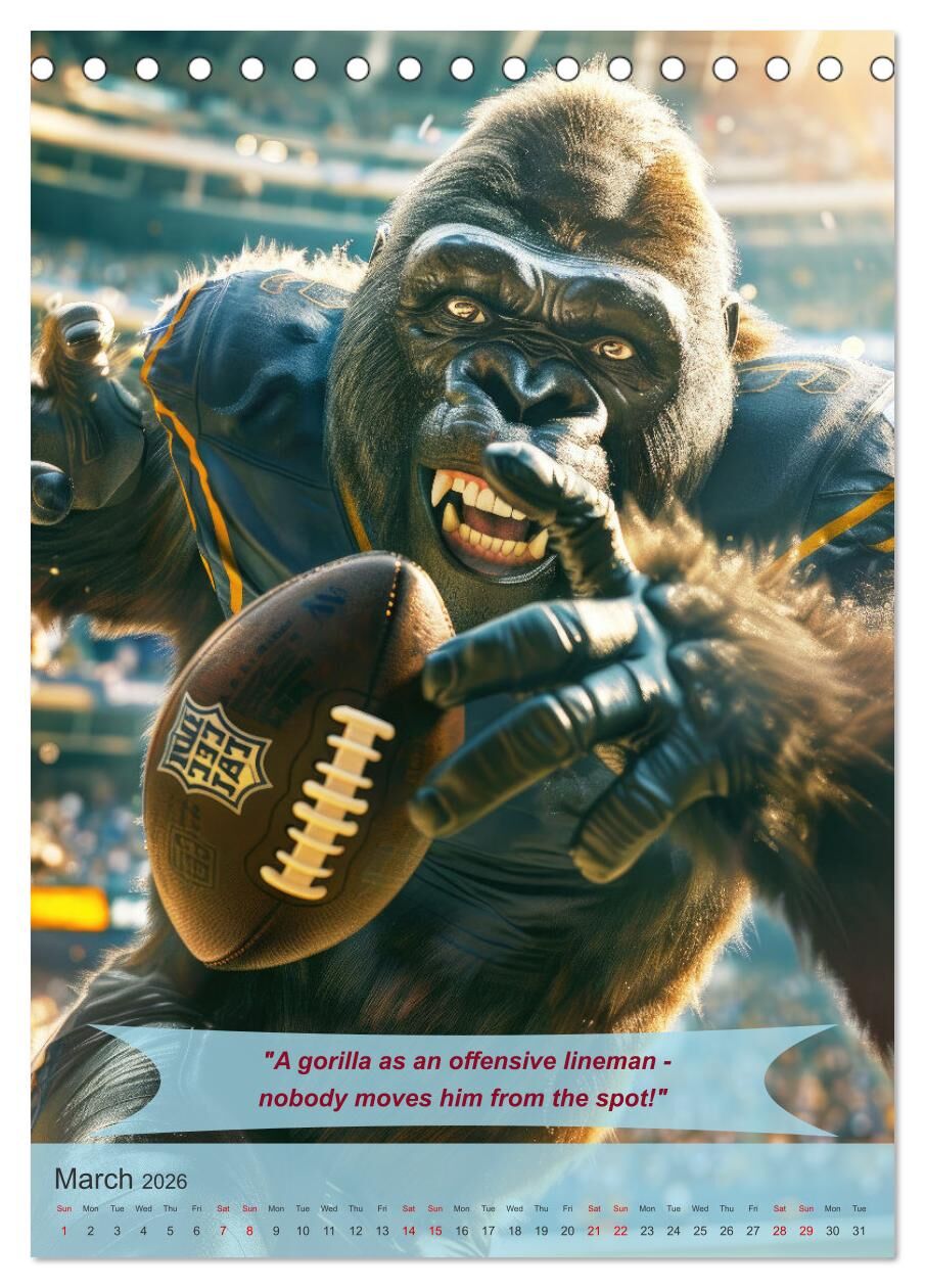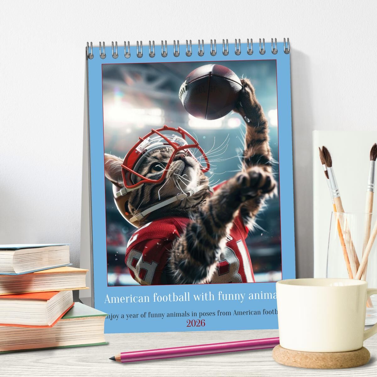 American football with funny animals (Desk Calendar 2026 DIN A5 portrait), CALVENDO 12 Month DeskCalendar
