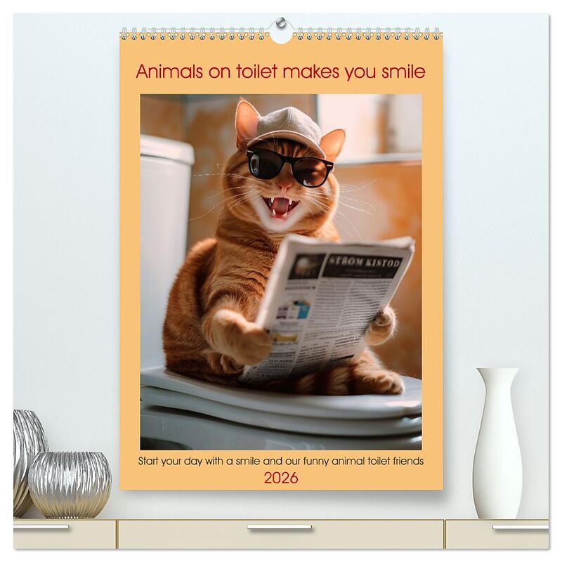 Animals on toilet makes you smile (High Quality Premium Wall Calendar 2026 DIN A2 portrait),CALVENDO 12 Month Wall Calendar